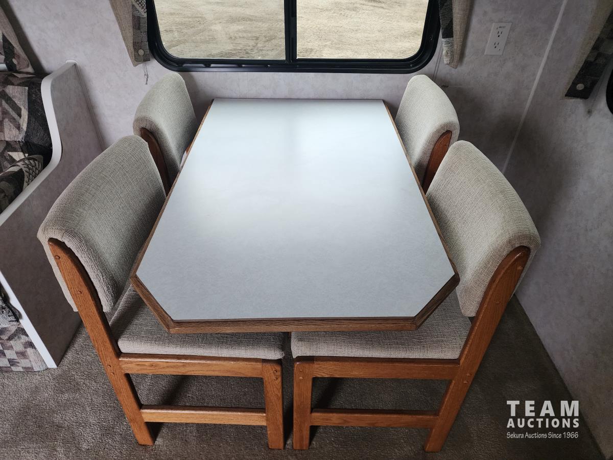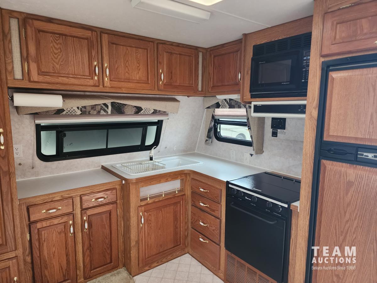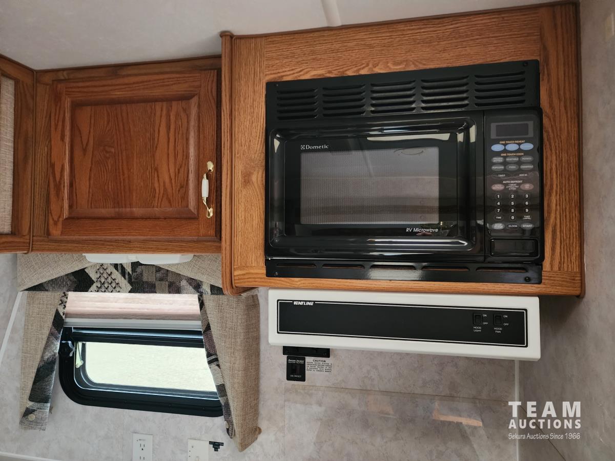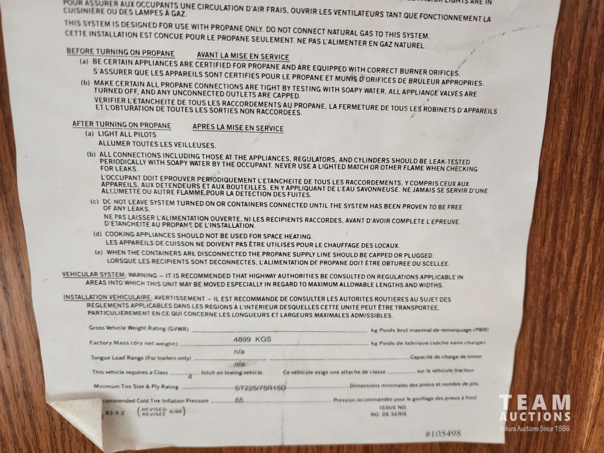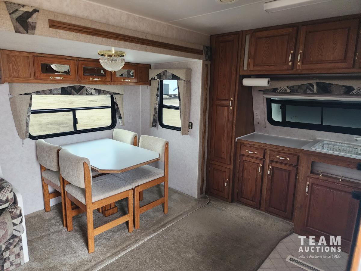 One slide out, 4 season, A/C, furnace, fridge, stove, microwave, dinette, full bathroom, rear bedroom, couch, outside shower, 225/75R15 tires