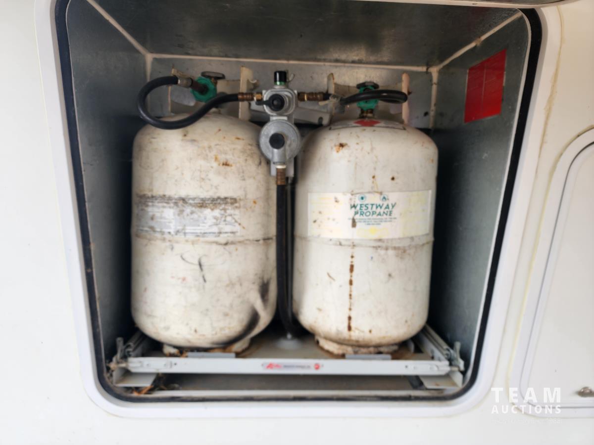 (1) slide out, fridge, stove, microwave, dinette, couch, rocking chair, TV, A/C, furnace, bedroom, bathroom, awning, outside shower, 235/80R16 tires