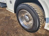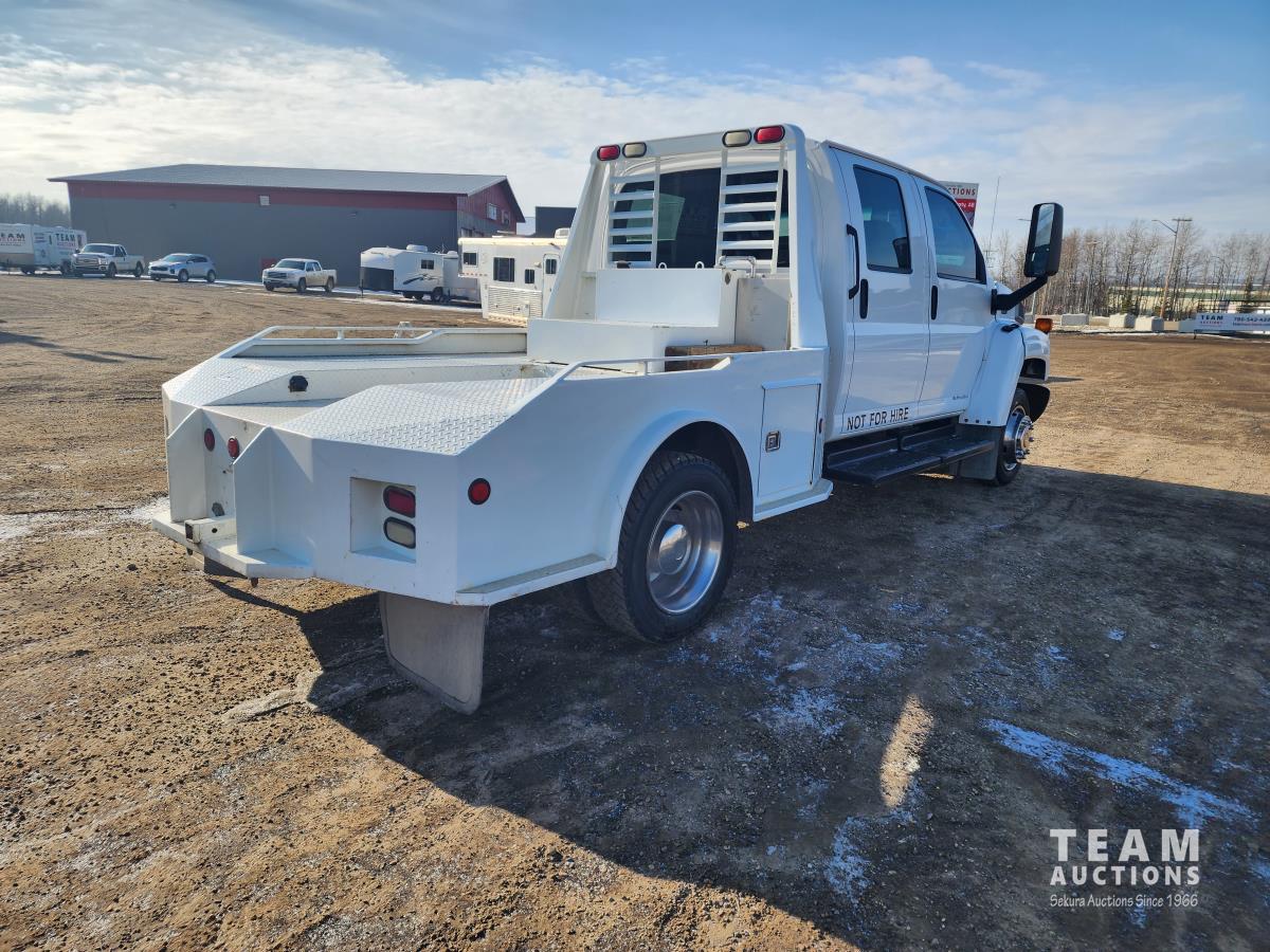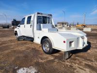 Duramax 6.6 L V8 diesel engine, Allison automatic transmission, A/C, leather interior, stereo, tool boxes, spring suspension, hydraulic brakes, P/W, P/L, steel deck 9ft (total length) x 8 ft 5 inch wide, extra fuel storage, interior fuel pump switch (on the fly fueling), 5th wheel hitch, rear trailer tow package with electric brake controller, 225/70R19.5 tires