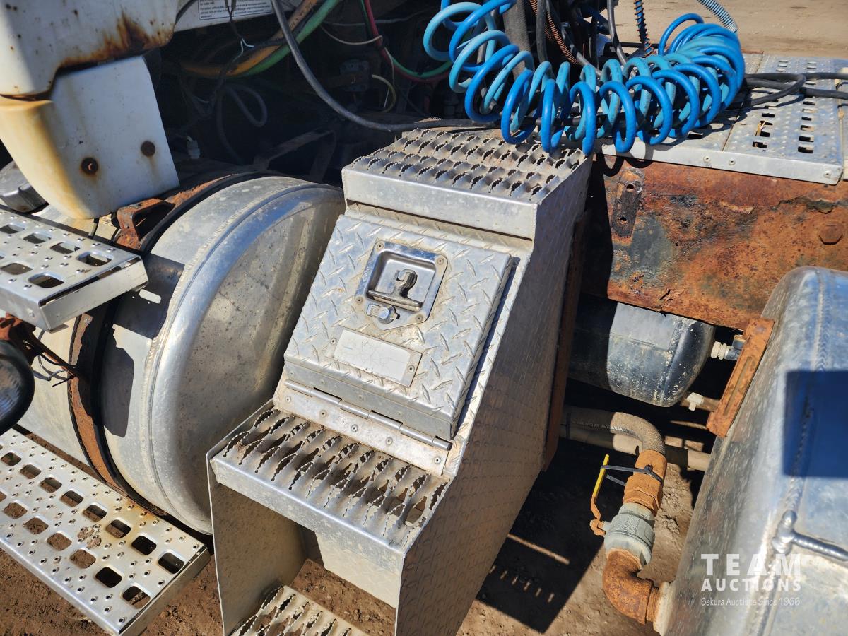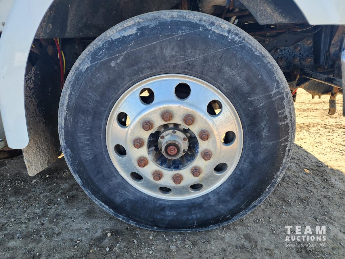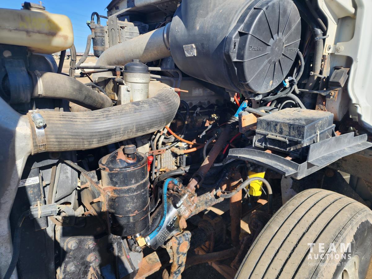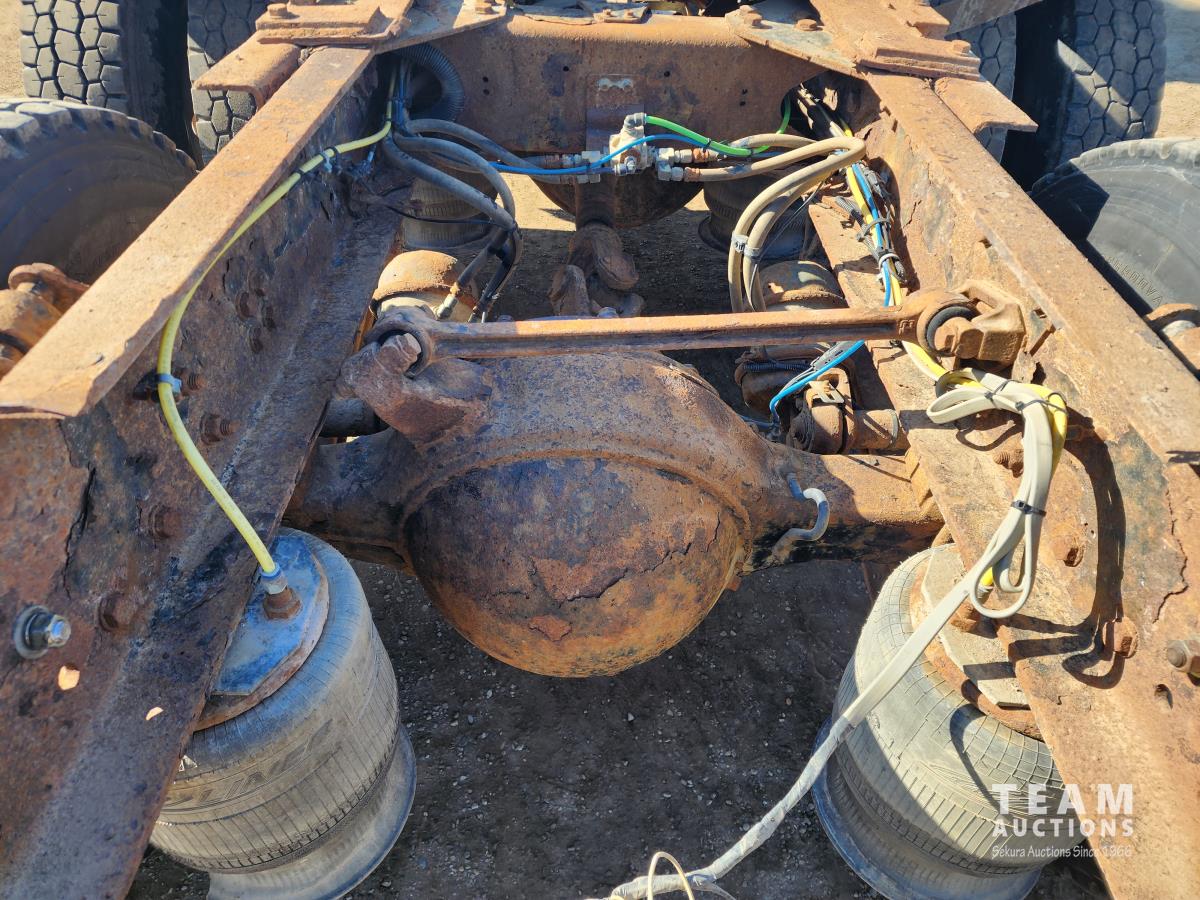 Mercedes 460 12.0 L engine, engine brake, Eaton Fuller 18 speed manual transmission, A/C, cruise control, radio, beacons, single line wet kit for end dump, Airliner air ride suspension, 48,000 lb rear axles, 205 inch WB, Rockwell diffs with full lockers, all aluminum wheels, 11R22.5 tires