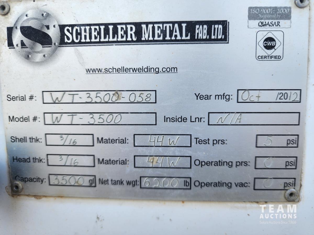 56 2012 Scheller Metal 3500 Gallon Truck Mount Tank
