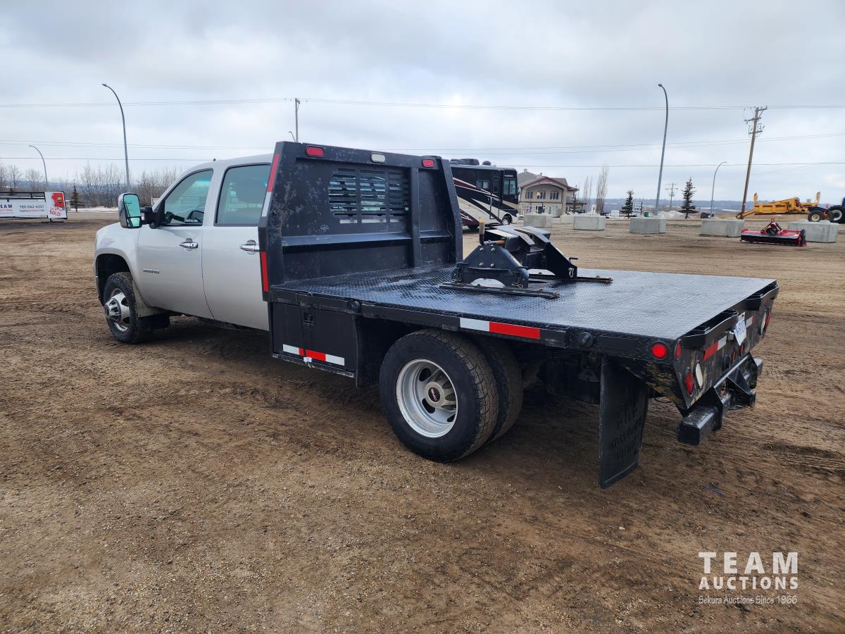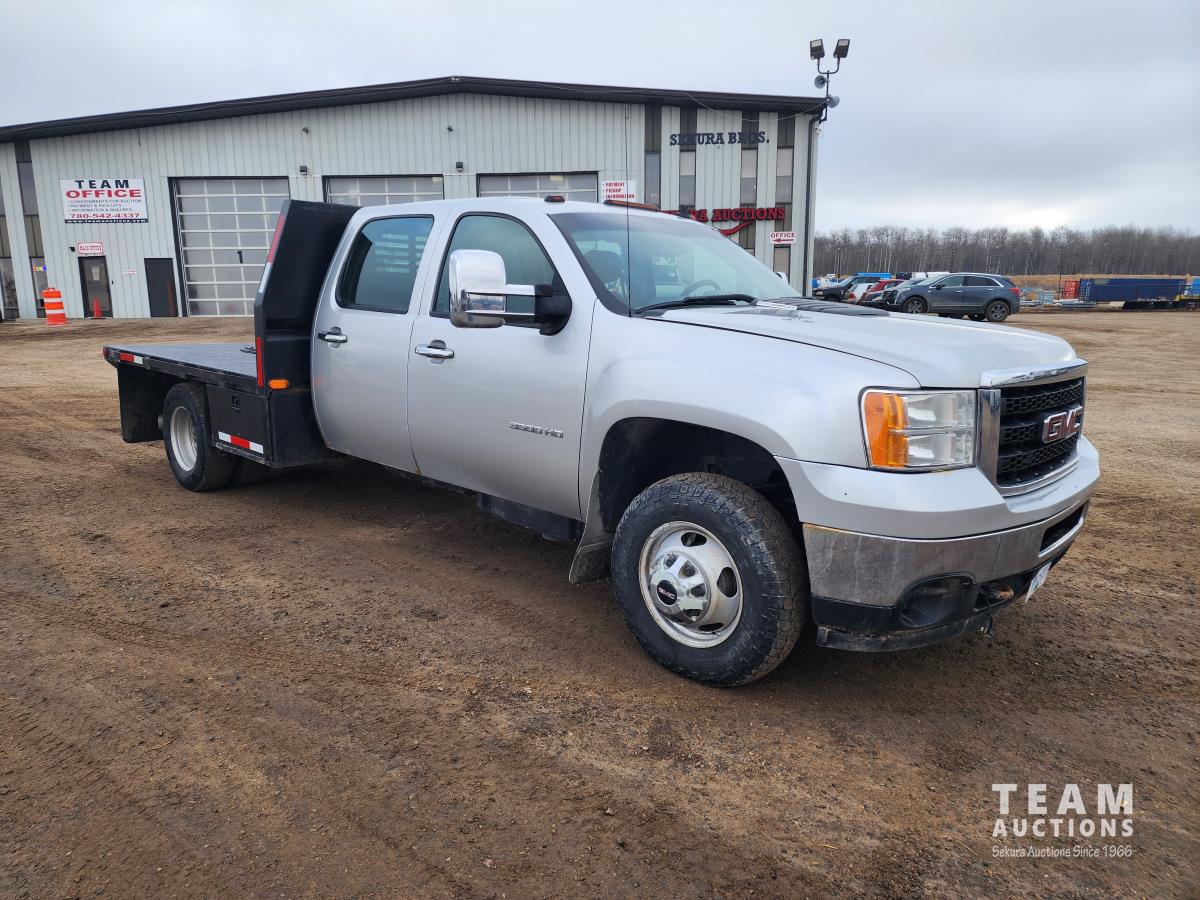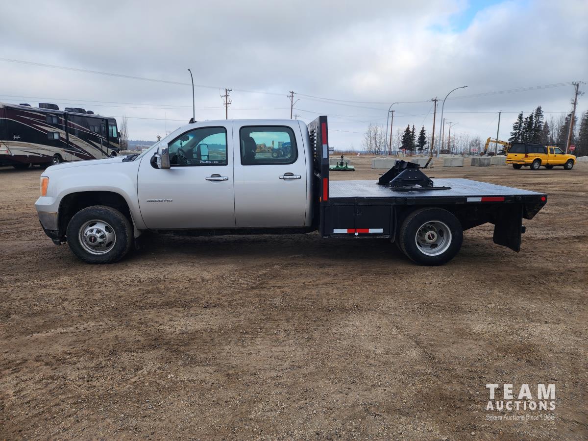 388 2014 GMC 3500 4X4 Crew Cab Flat Deck Dually Truck