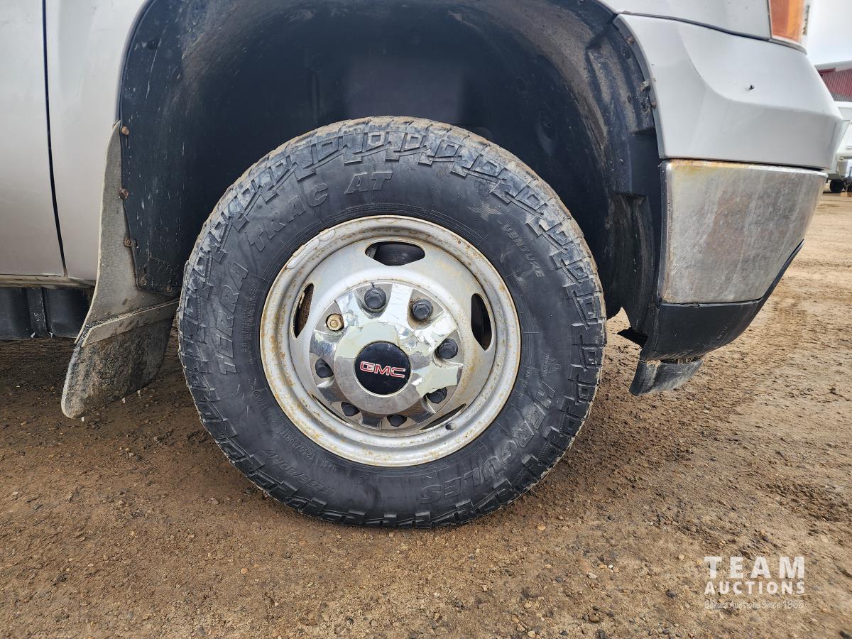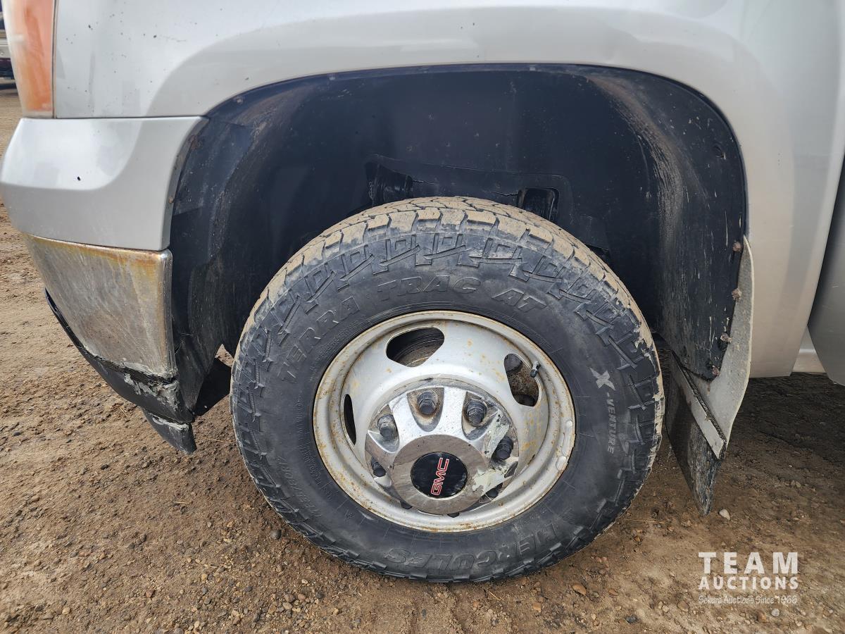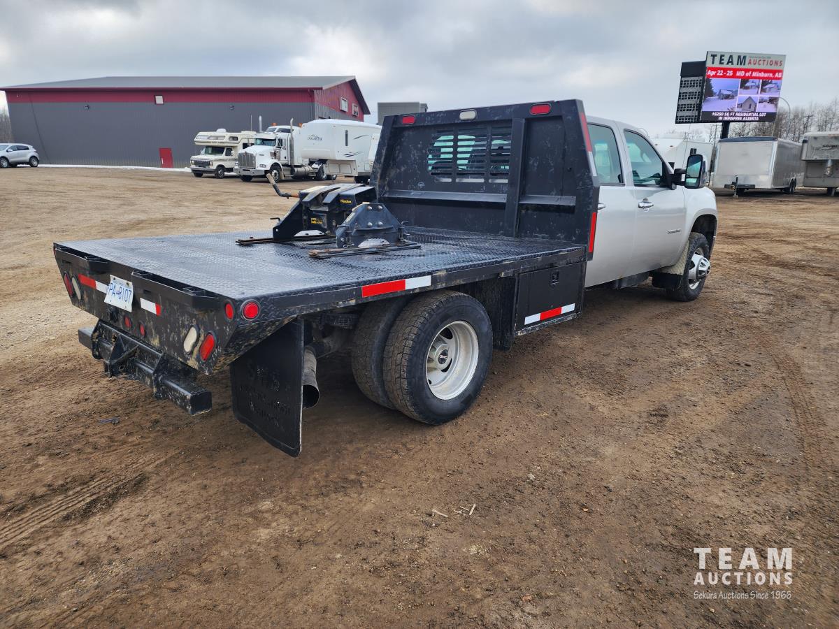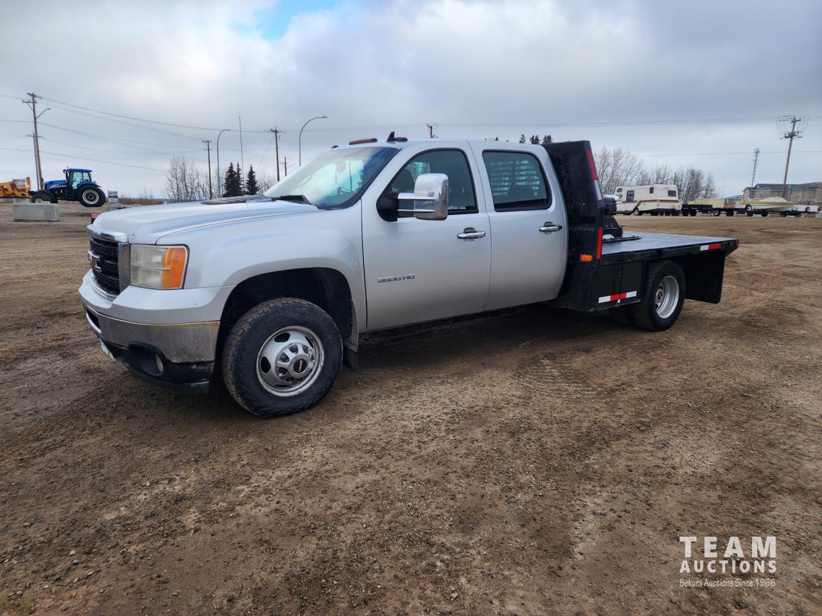 388 2014 GMC 3500 4X4 Crew Cab Flat Deck Dually Truck