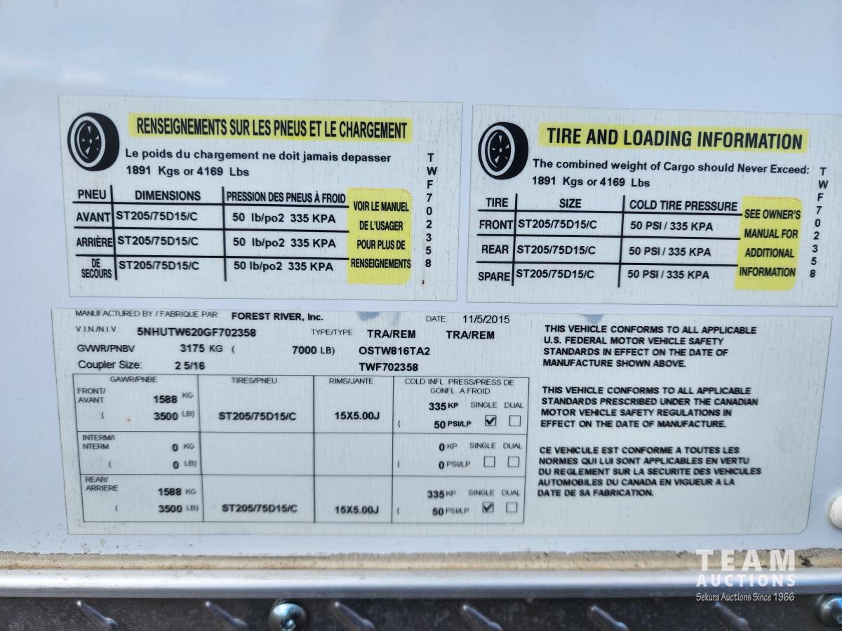 186 2016 Forest River 16 Ft T/A Enclosed Trailer