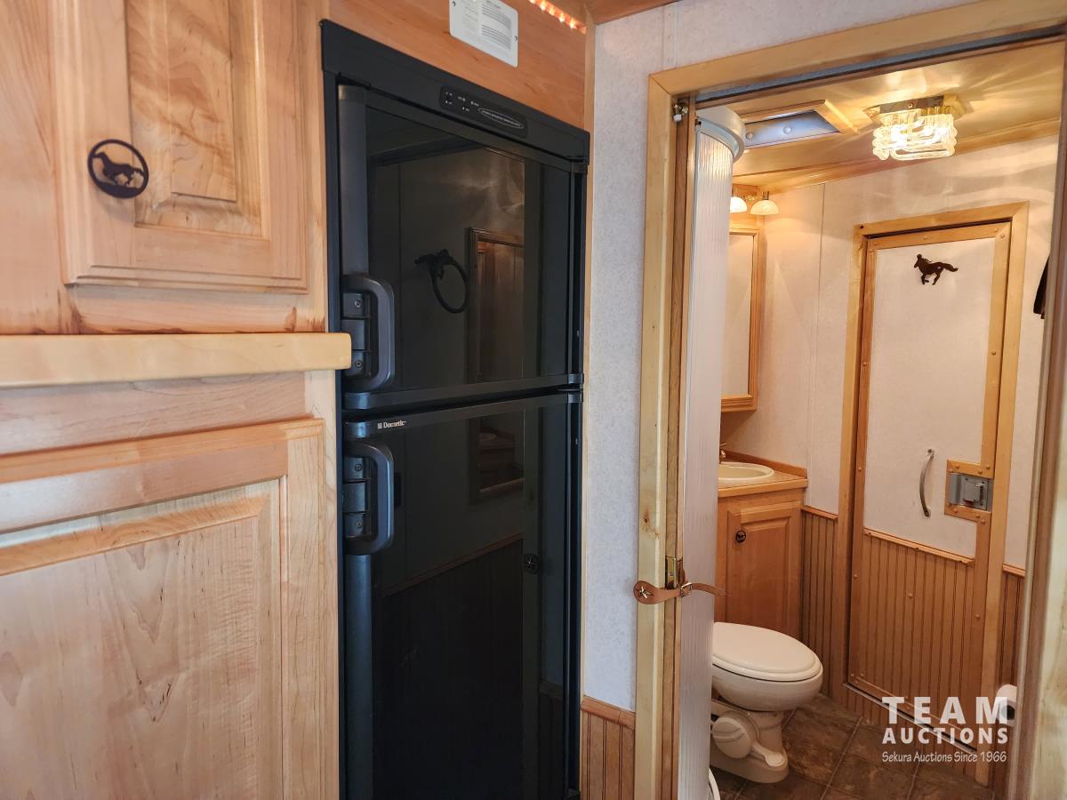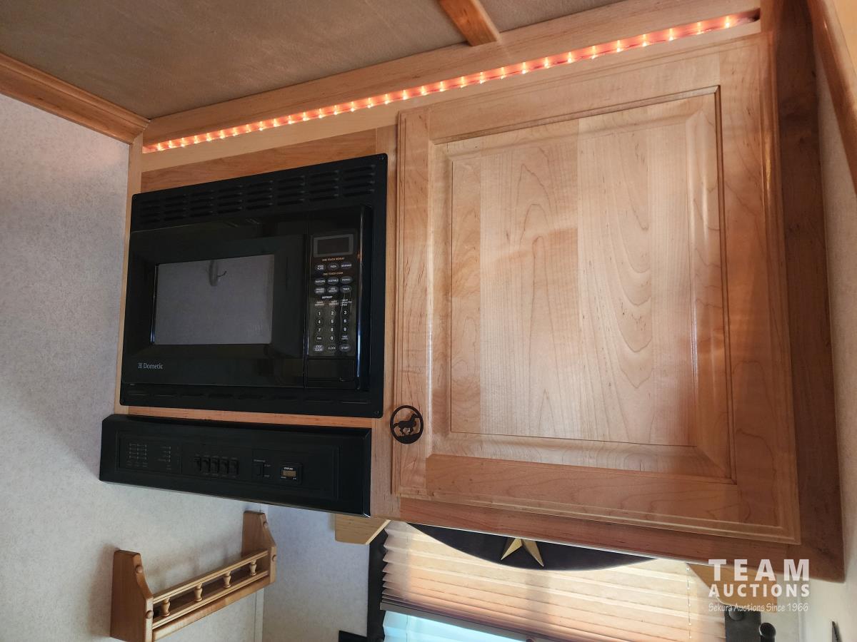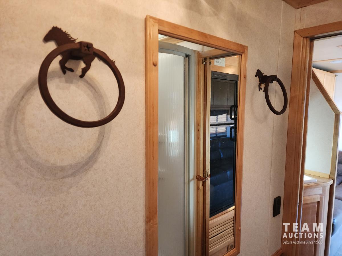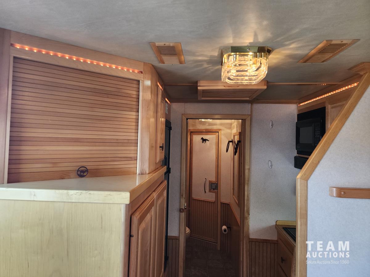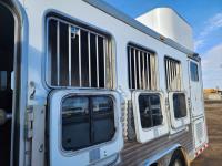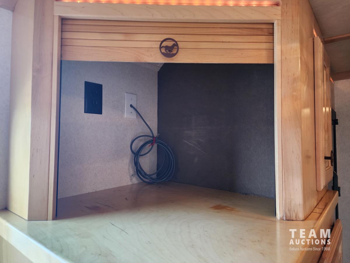 Front living quarters include solid wood Duster interior, full fridge with freezer (propane/electric), stove, microwave, king size master area with privacy door and storage cabinets, full bathroom with shower, cupboards have interior lighting, decorative rope lights, sleeps 5, A/C, furnace, stereo with speakers inside and outside, electric awning, setup for 110 power or 3000 watt generator, electric landing gear, solar panel on roof, rear area includes, 4 horse stalls with dividers, feed bunks double as waterers, full floor rubber matting, drop down windows with bars, exterior LED lighting, hay pod on roof, (2) tack areas with saddle stands, spring suspension, 99 inch wide, spare tire, 235/85R16 tires