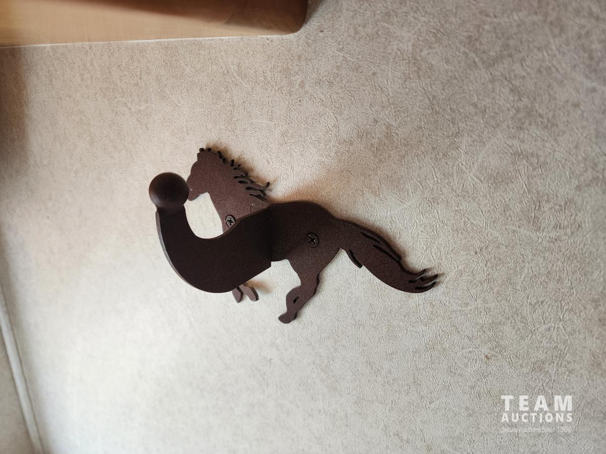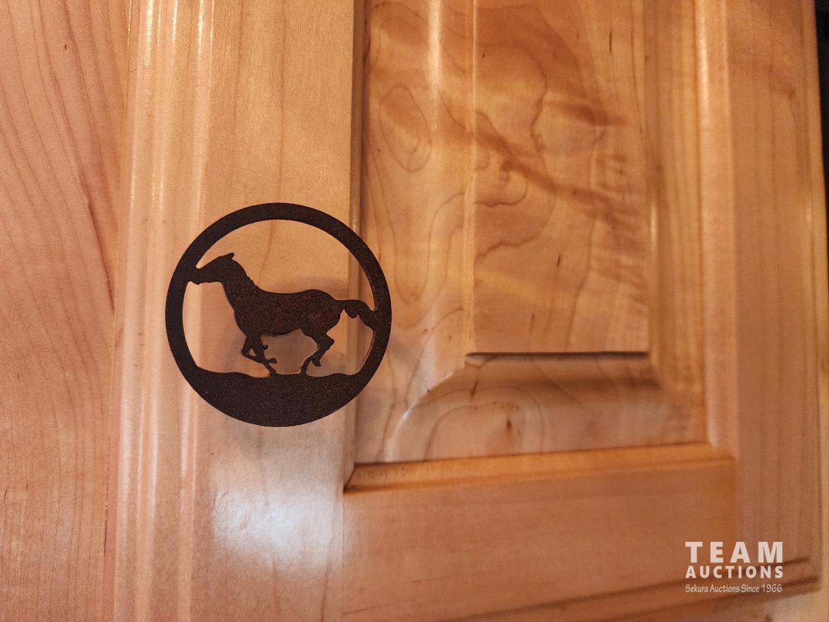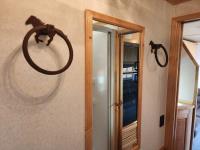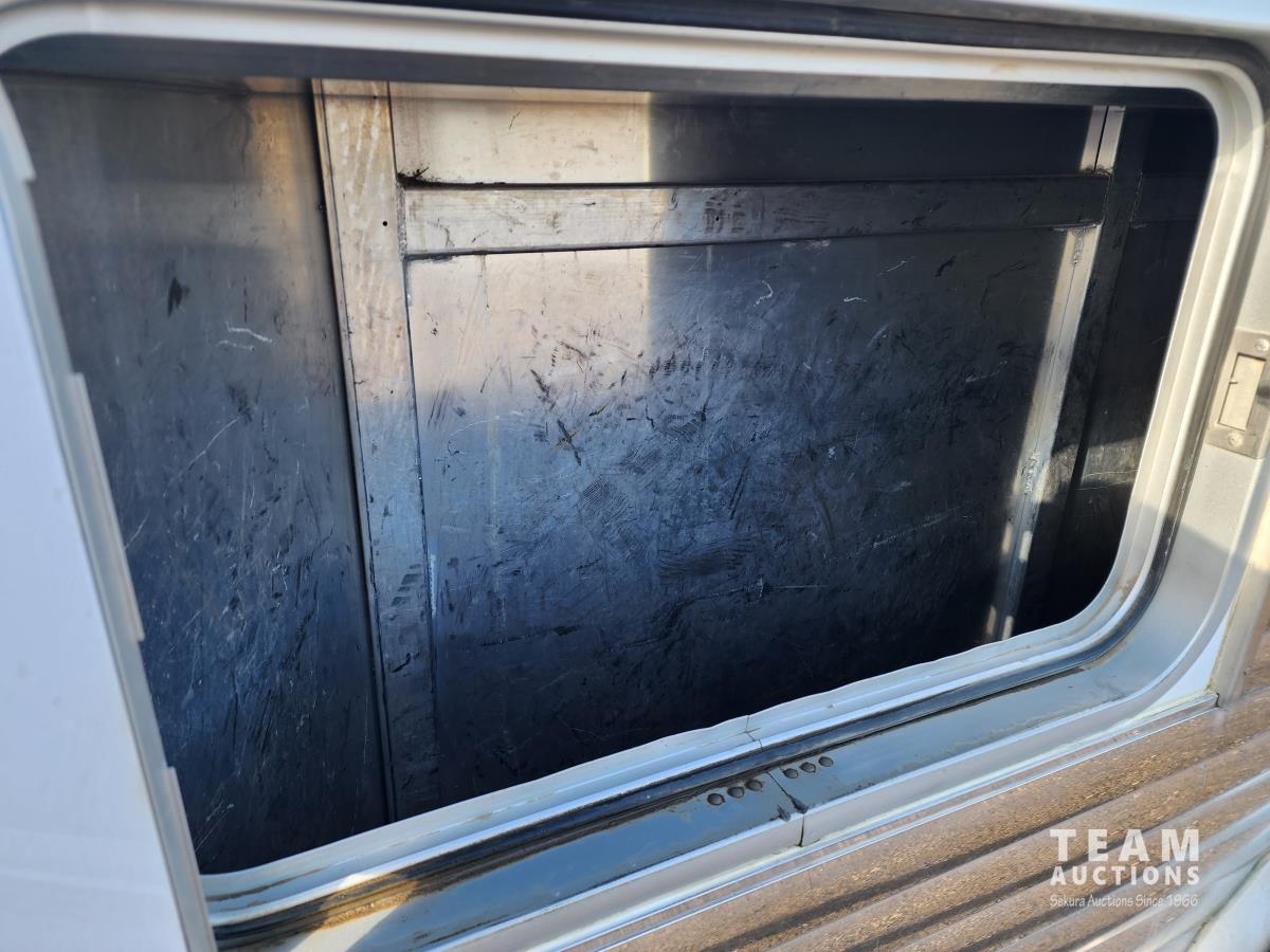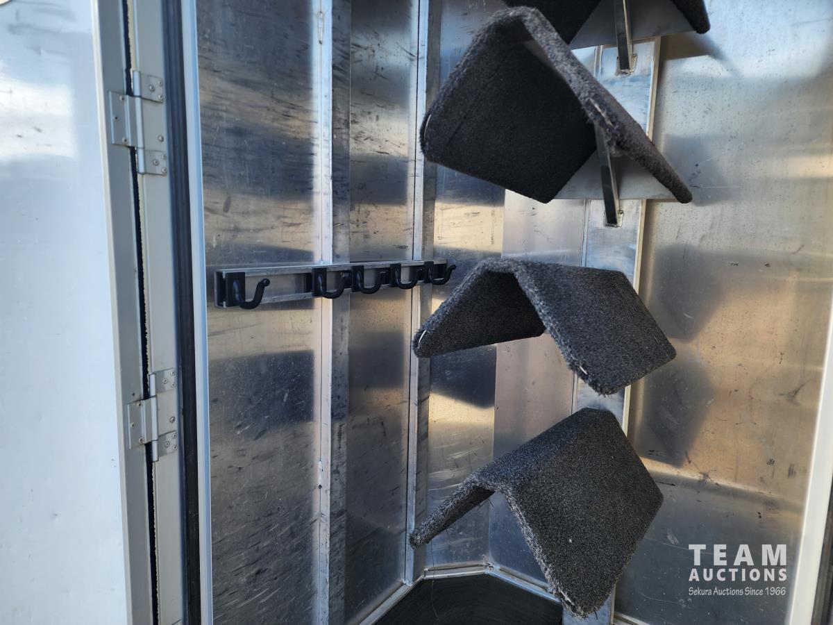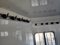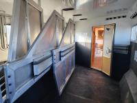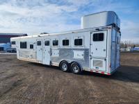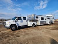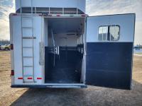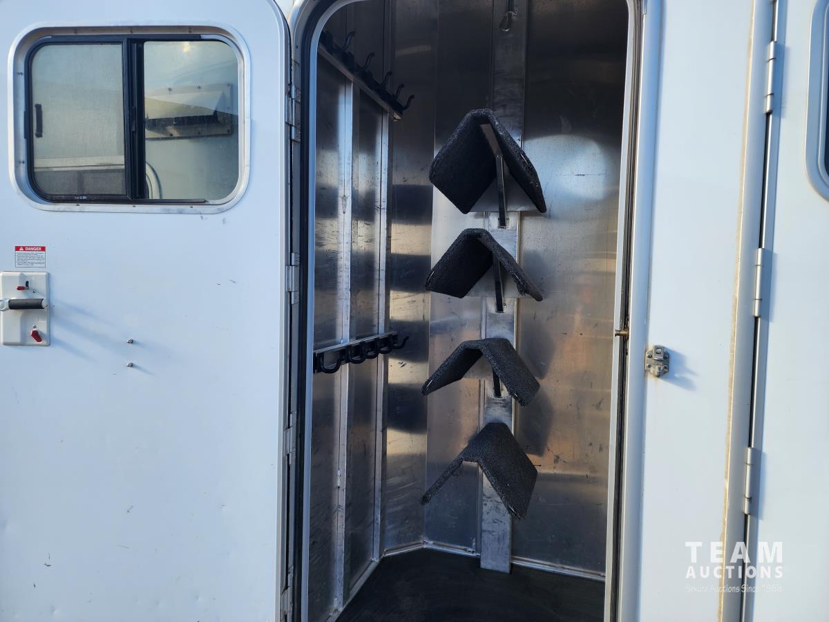Front living quarters include solid wood Duster interior, full fridge with freezer (propane/electric), stove, microwave, king size master area with privacy door and storage cabinets, full bathroom with shower, cupboards have interior lighting, decorative rope lights, sleeps 5, A/C, furnace, stereo with speakers inside and outside, electric awning, setup for 110 power or 3000 watt generator, electric landing gear, solar panel on roof, rear area includes, 4 horse stalls with dividers, feed bunks double as waterers, full floor rubber matting, drop down windows with bars, exterior LED lighting, hay pod on roof, (2) tack areas with saddle stands, spring suspension, 99 inch wide, spare tire, 235/85R16 tires