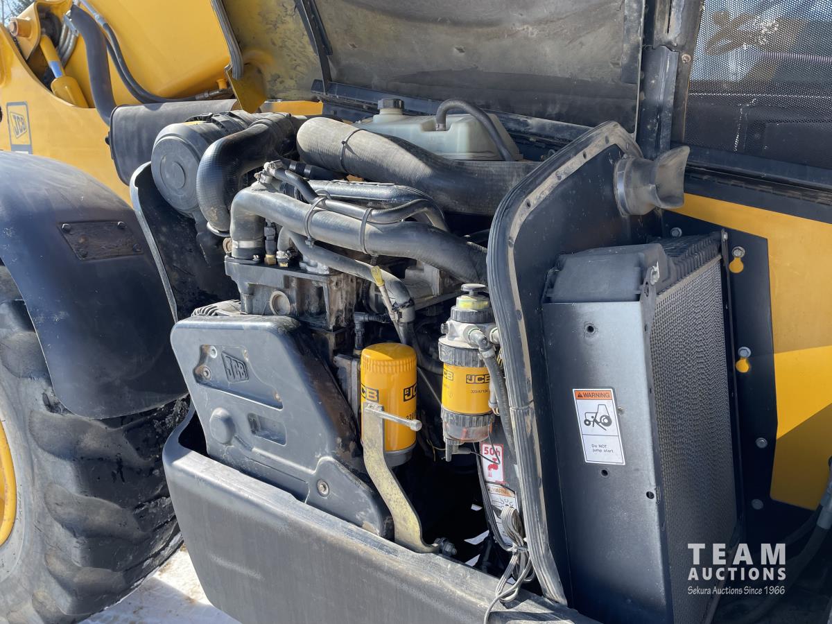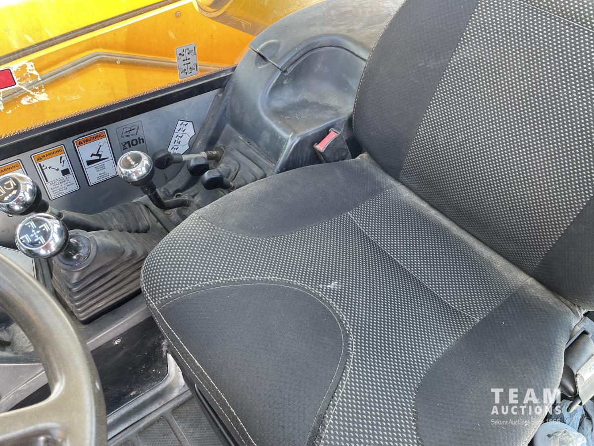 109 HP engine, 4 speed power shift transmission, 10,000 lb lift, quick attach bucket, pallet forks, auxiliary hydraulics, 30 ft reach, 44 ft reach height, hydraulic outriggers, back up camera, front and rear fenders, tilting frame, 3-way steering, foam filled tires, 17.5X25 tires