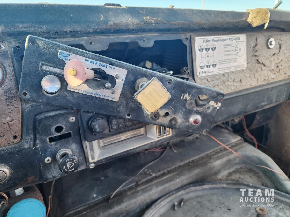 International diesel engine, Eaton Fuller manual transmission, spring suspension, 202 inch WB, air brakes, 385/65R22.5 front tires, 10.00R20 rear tires