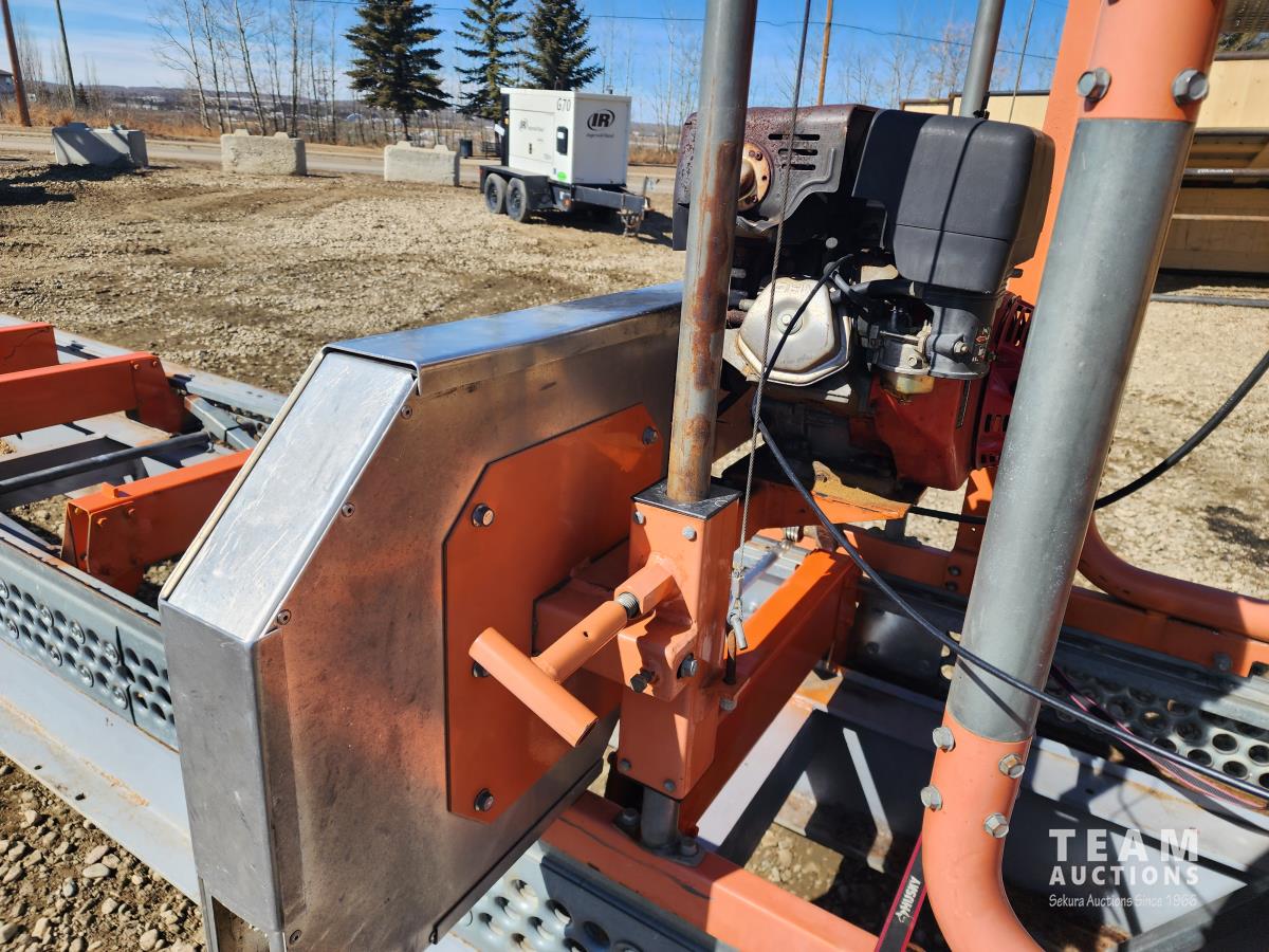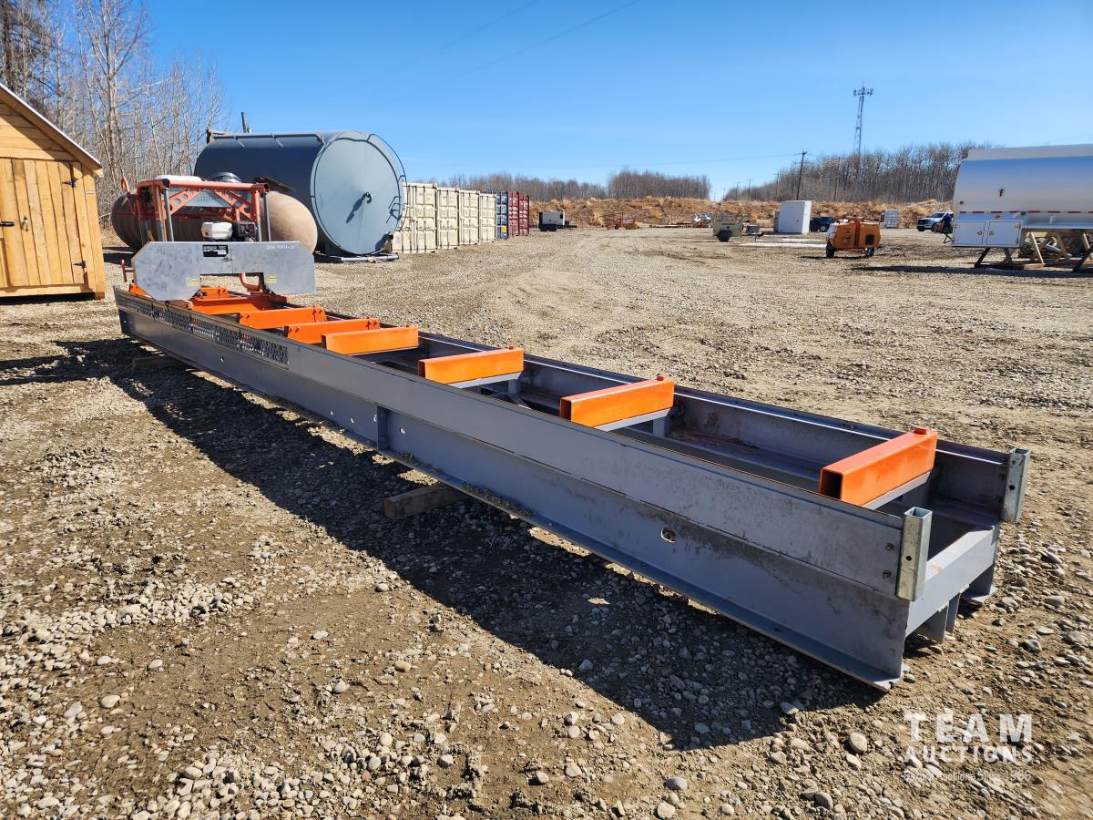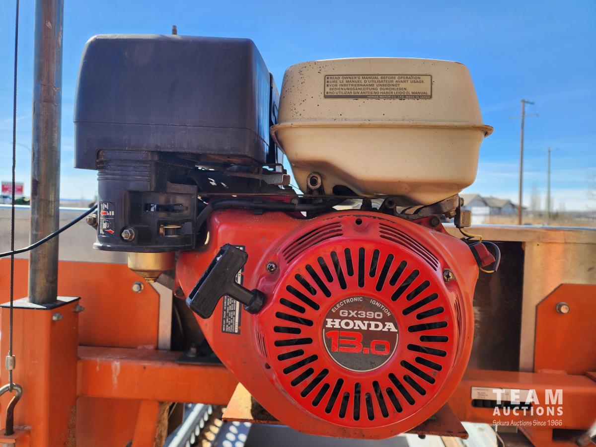 30 ft track, Honda GX390 13 HP gas engine, handles logs up to 31 inches in diameter, cuts boards up to 24 inches wide