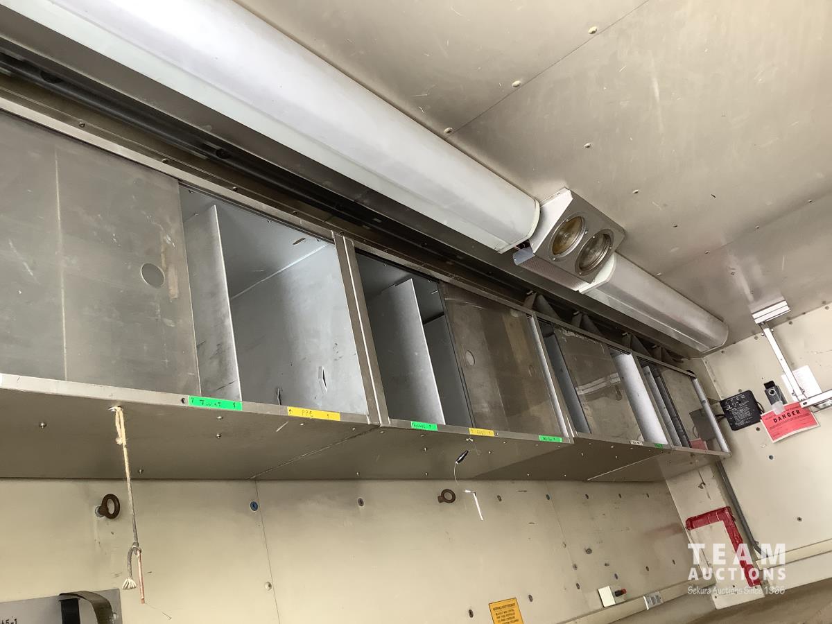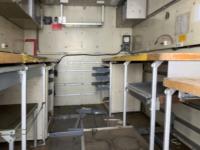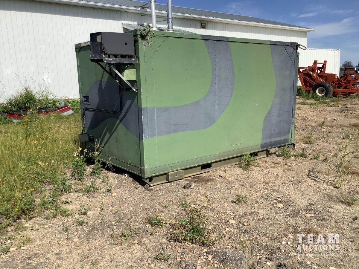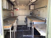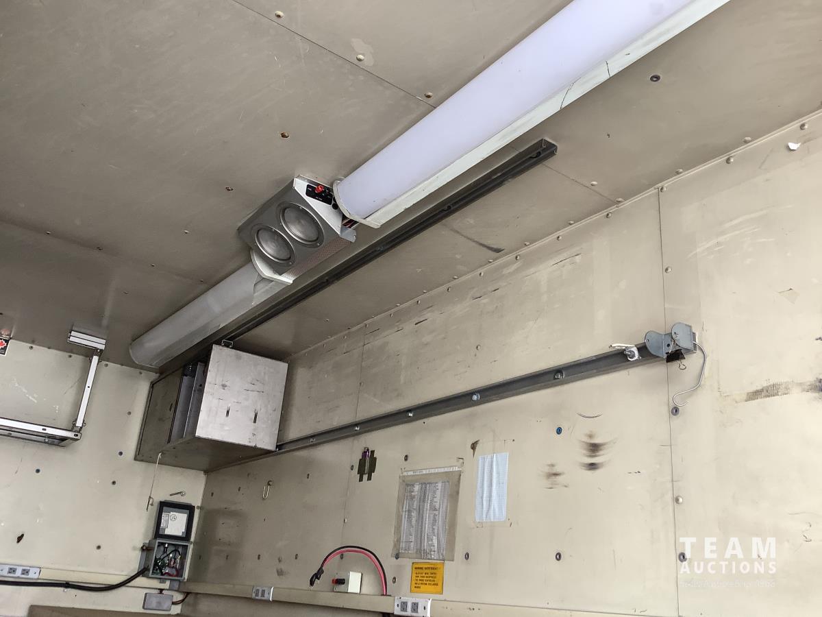 Wired, diesel heater, aluminum finished inside and out, counters, shelving, benches