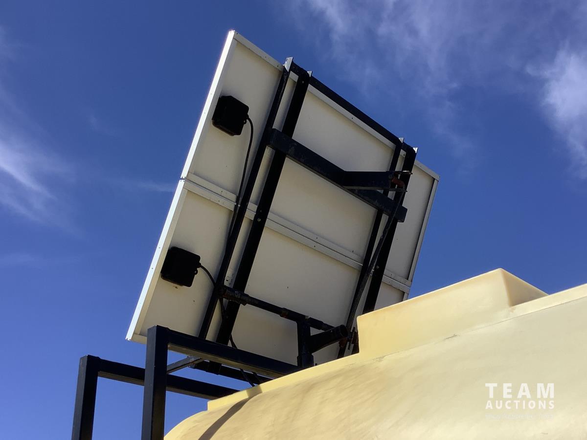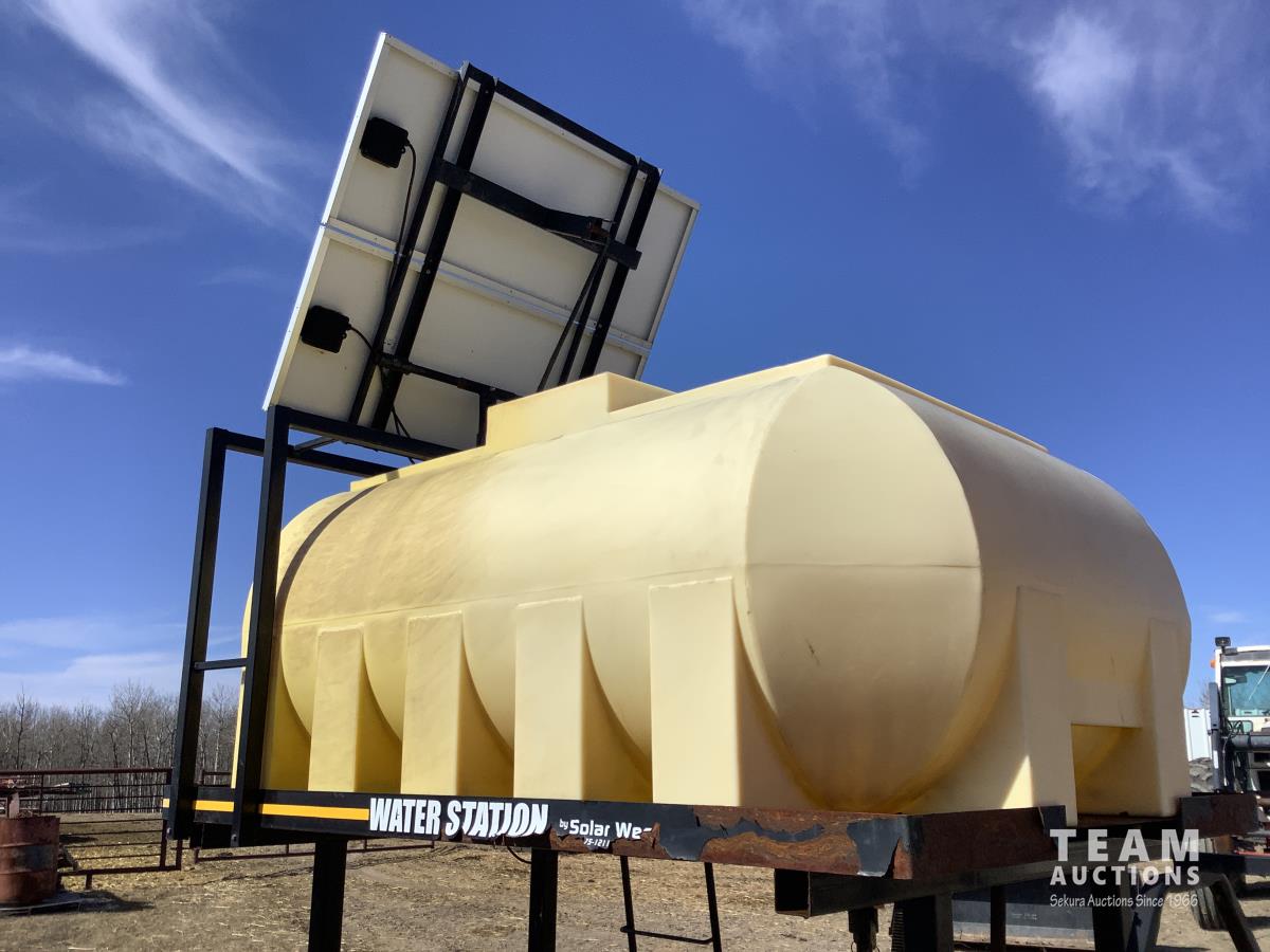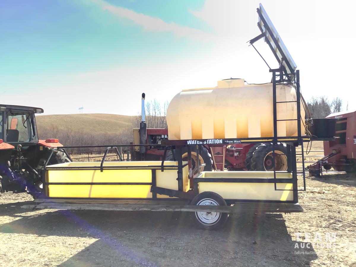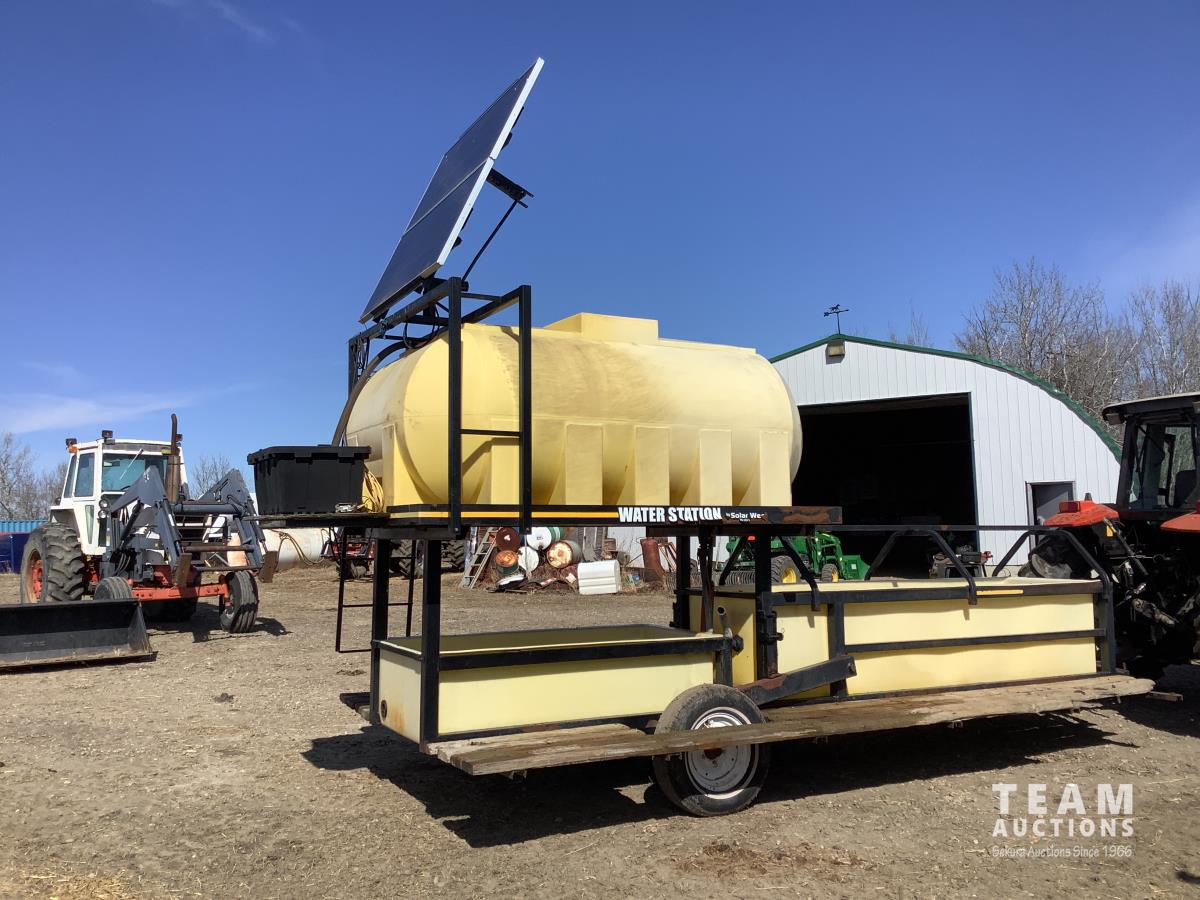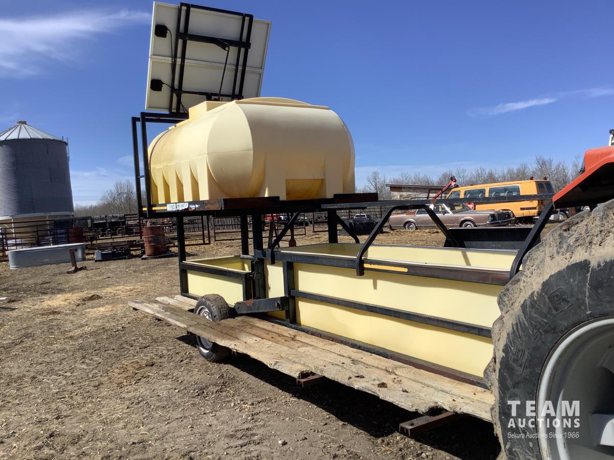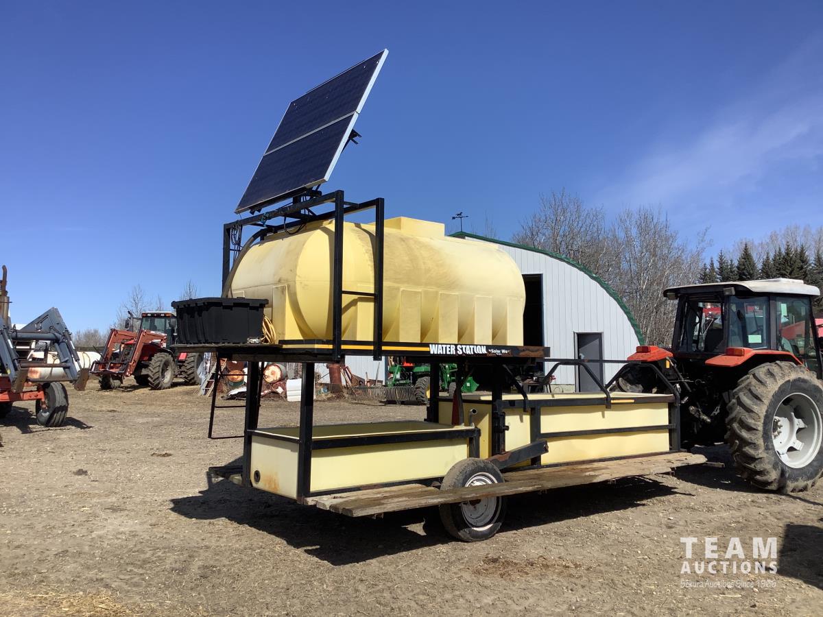 Solar panel with batteries and water pump, top holding tank, (2) drinking troughs, road transport kit, ground wood floor boards