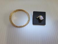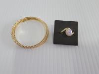 2250 14K Gold Plated Lilac Halo Ring and 14K Gold Plated Bangle (Unused)