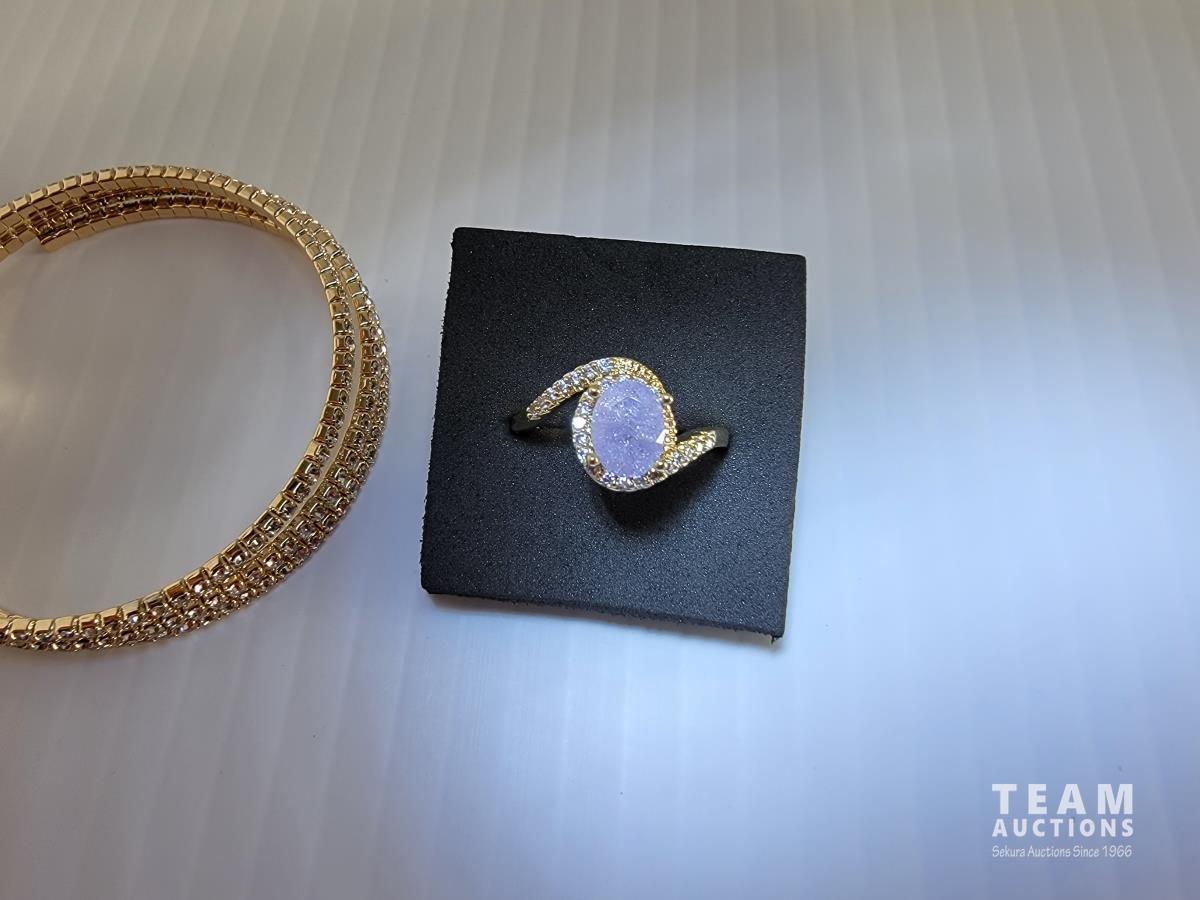 2250 14K Gold Plated Lilac Halo Ring and 14K Gold Plated Bangle (Unused)