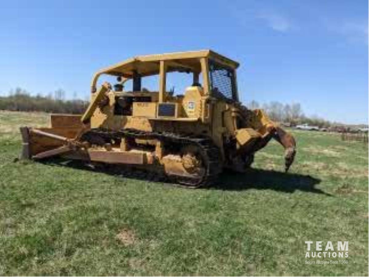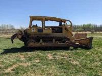 14 ft dozer, Caterpillar 20.4L engine, 3 speed power shift transmission, ROPS canopy, brush sweeps, 2 barrel single shank ripper, drawbar, 32 inch track pads