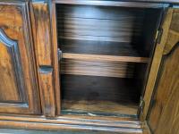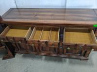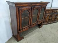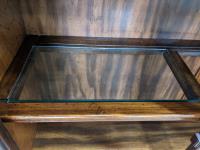 Glass shelves, bottom 58 inch w x 17 inch d x 33 inch h, top 54 inch w x 13-1/2 inch d x 45 inch h