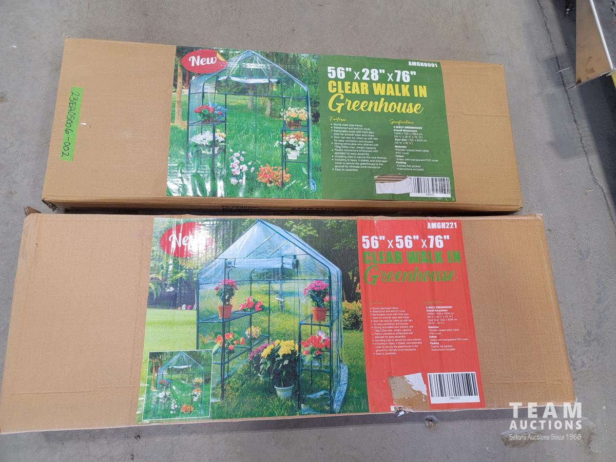 1128 (2) Walk in Clear Roll-Up Greenhouse with Shelves (Unused)