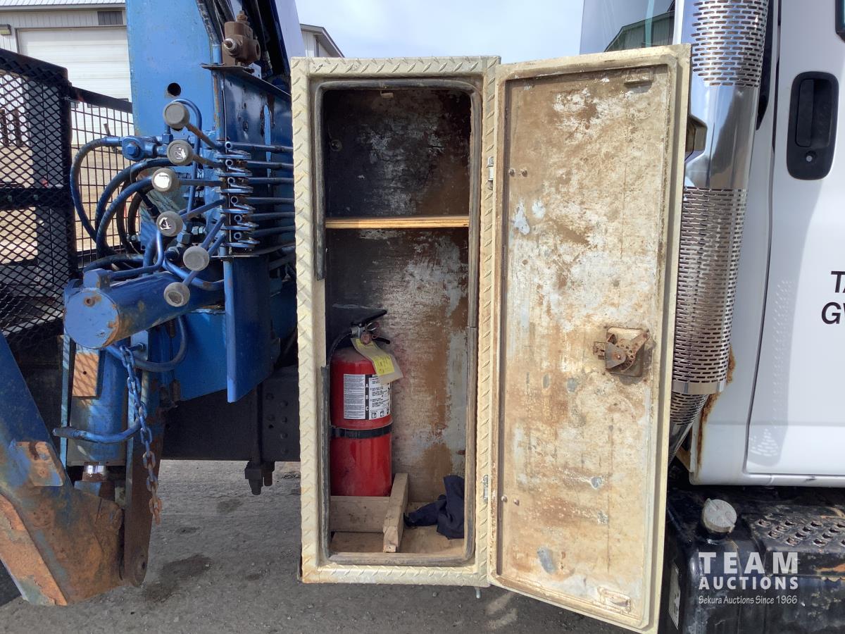 Caterpillar C7 Spicer 7 speed manual transmission, A/C, radio, aluminum tool boxes, 18 ft deck, Viva 723 7 Ton knuckle crane, outriggers, 12,000 lb front axle, 2,100 lb rear axles, air brakes, 11R22.5 rear tires
