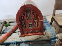 1255 Antique Radio, Lantern, Oil Can, Child's Chair and Handseeder