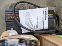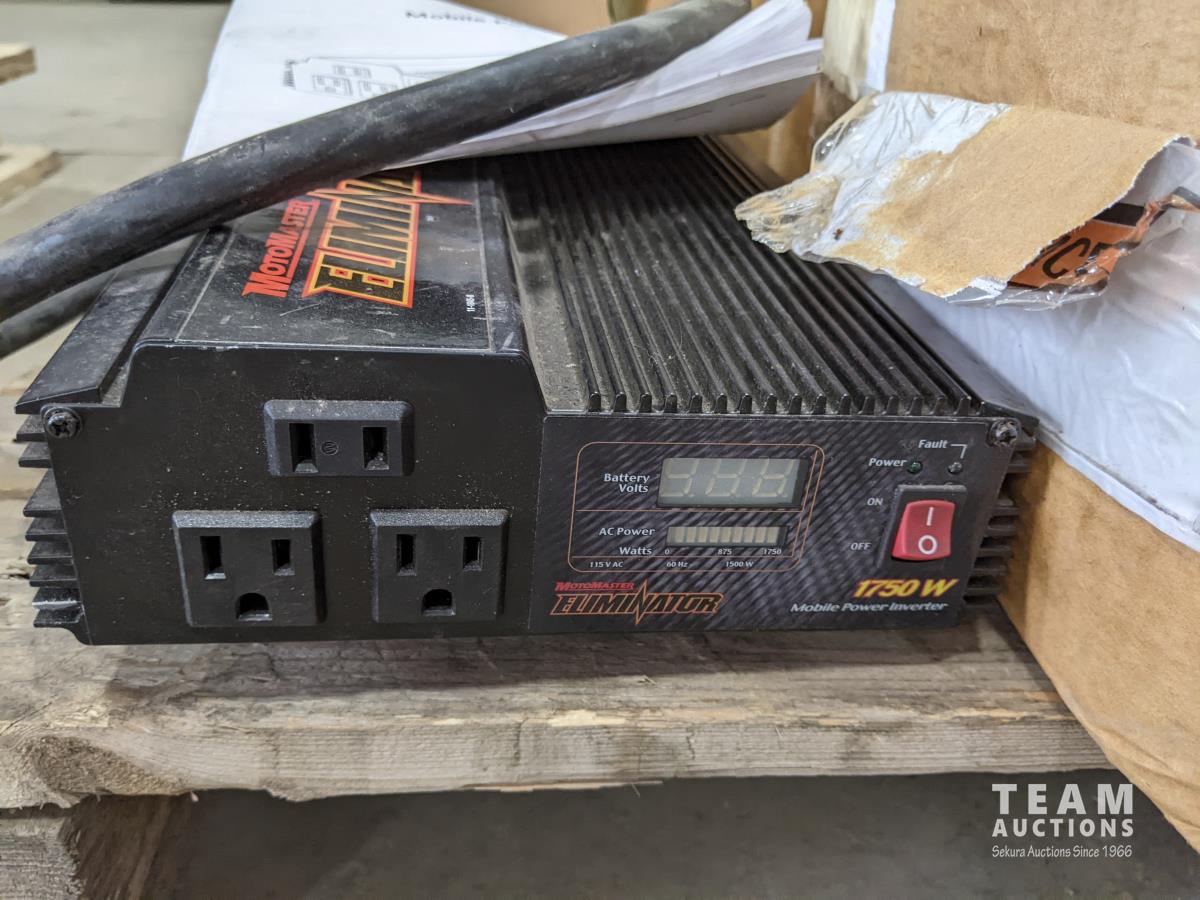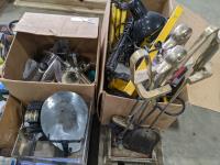 Fireplace set, food grinders, flood light bulbs, shop lights, vinyl blinds, Motomaster inverter