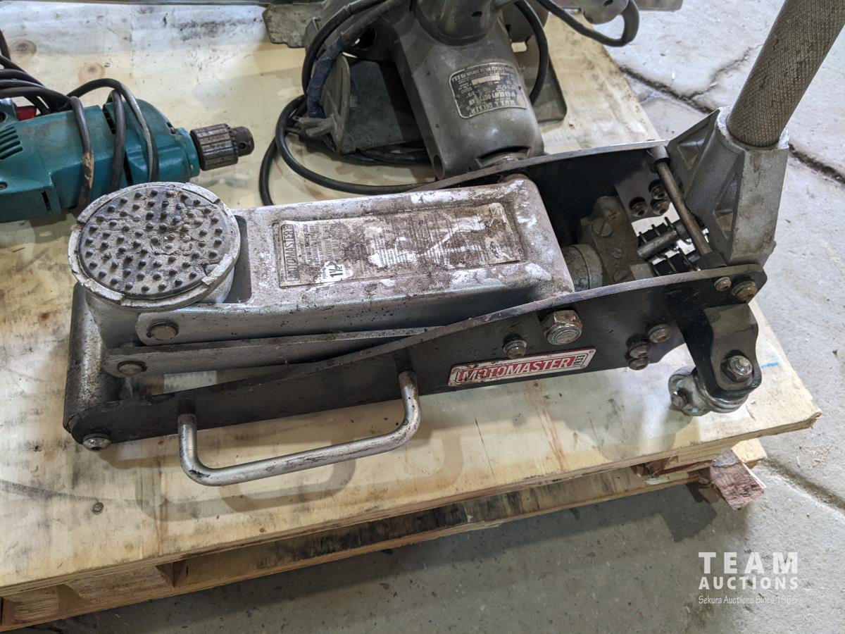Front grill fits 2010 Silverado, Black & Decker circular saw, Makita drill, Motomaster 1-1/2 ton floor jack, (2) Kenda 480/4.00-8 utility tires and set of car ramps