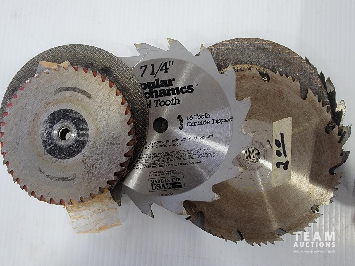 Miscellaneous bearings, assortment of saw blades and jobmate drill