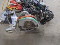 Qty of power tools including a router, circular saw, power plainer, (2) drills, (2) jig saws and (2) electric staple guns