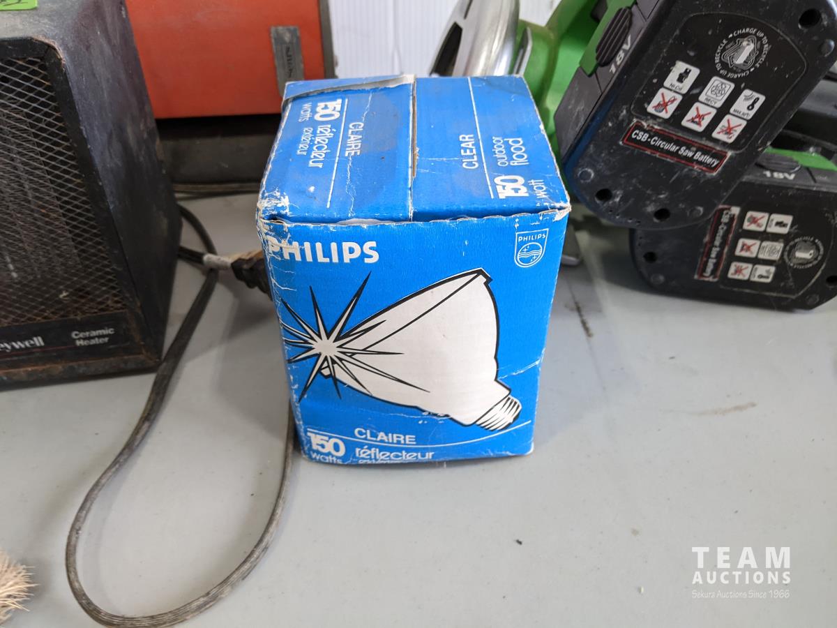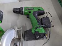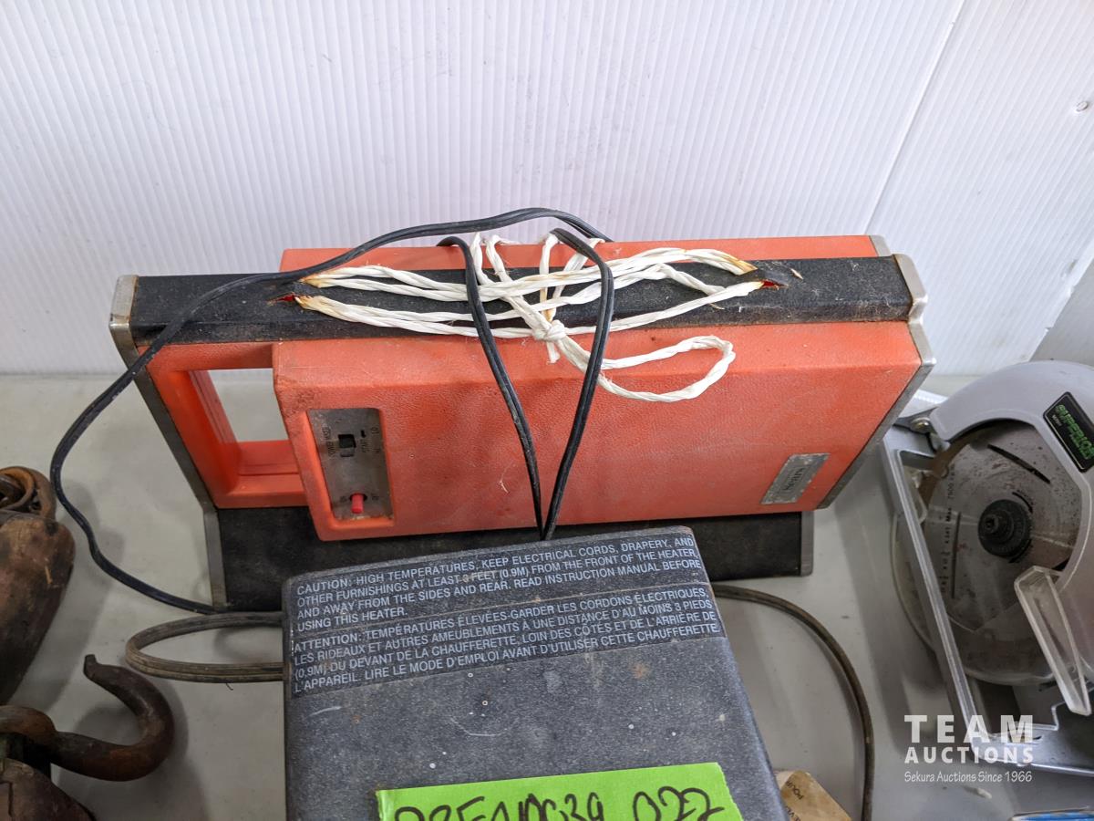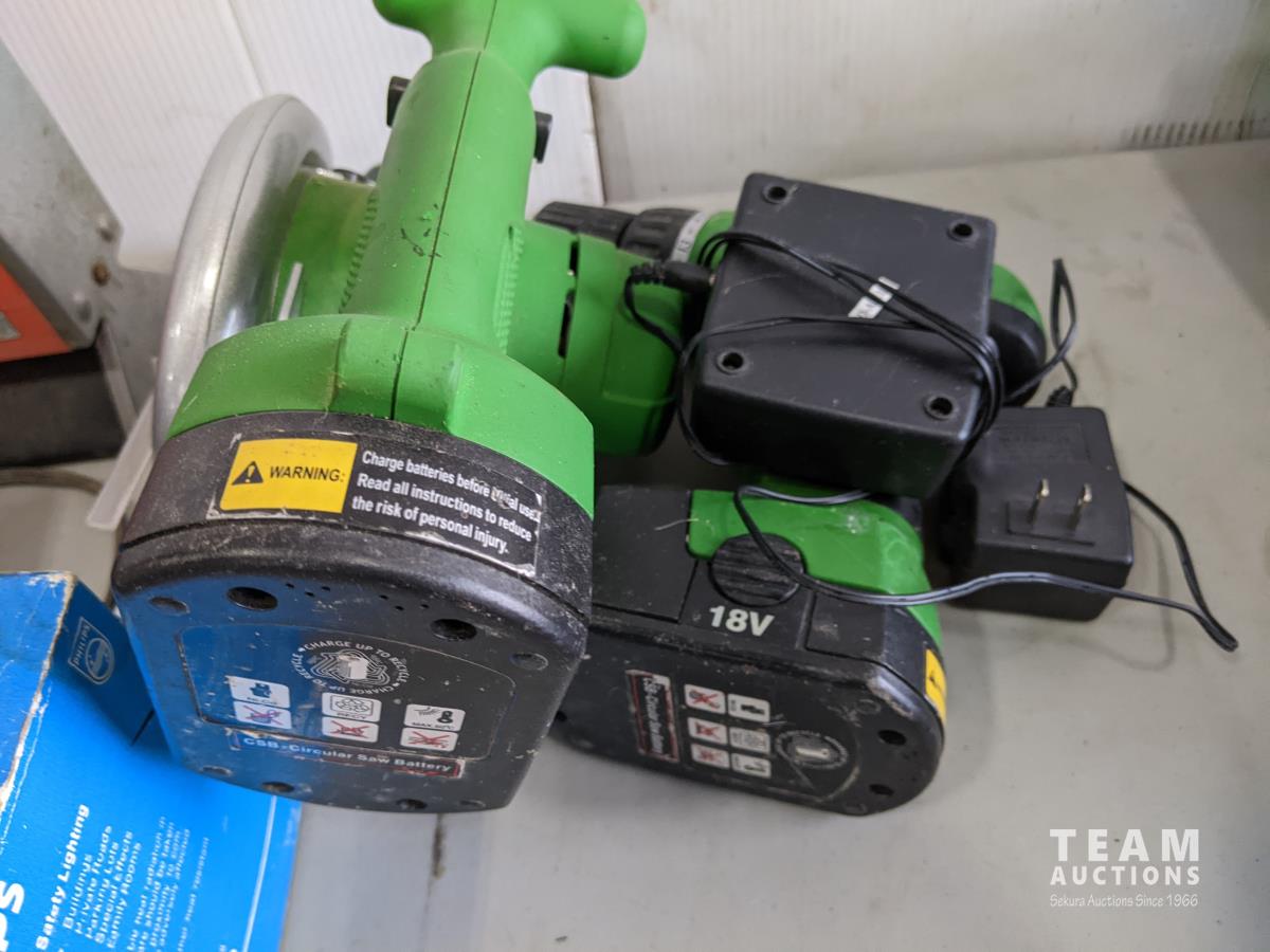 Cordless 18v drill and circular saw, vintage light and vintage block and tackle
