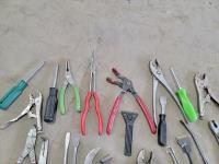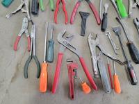 Pliers, pipe wrenches, needle nose pliers, screwdrivers and vice grips