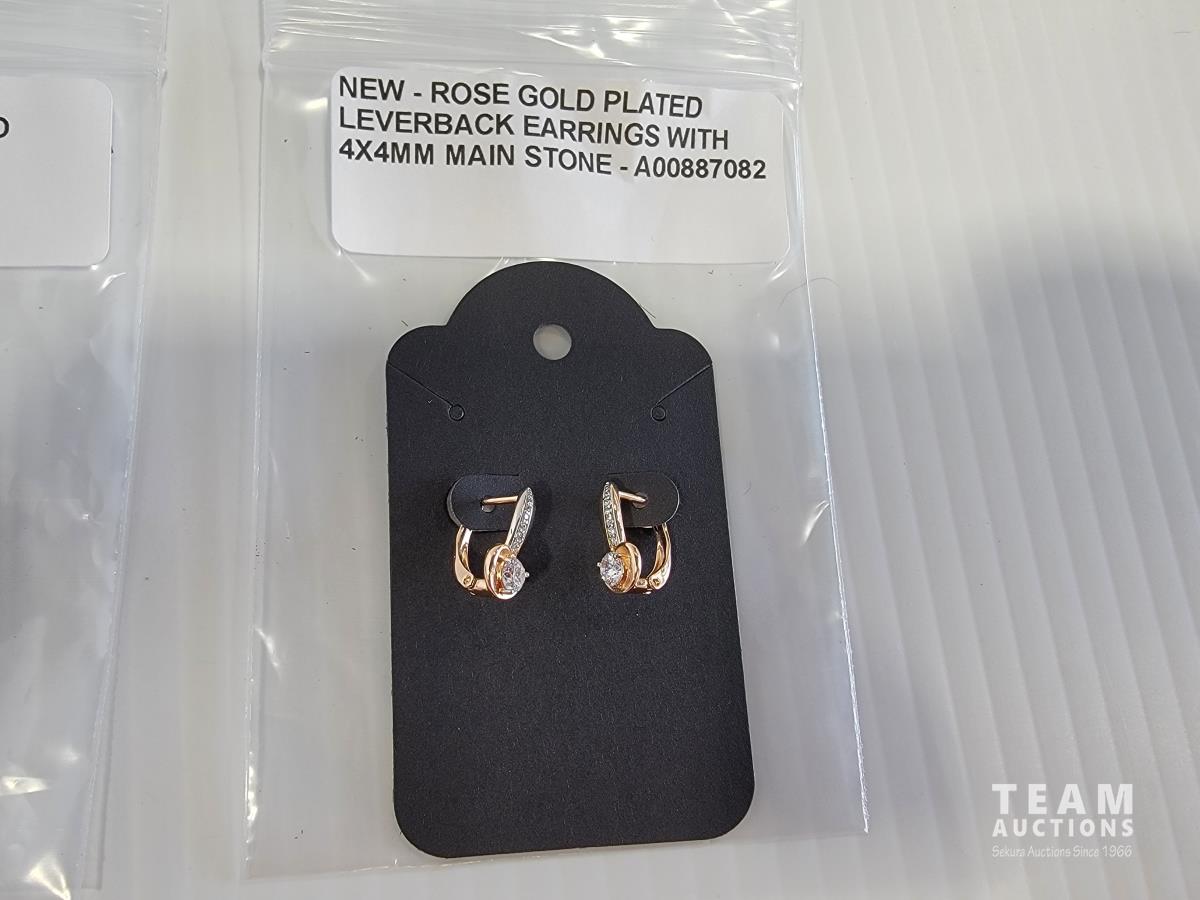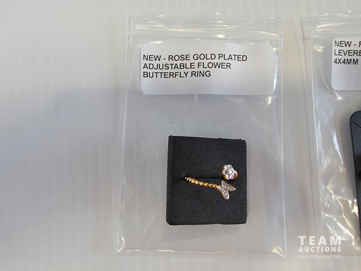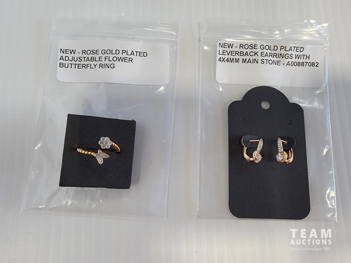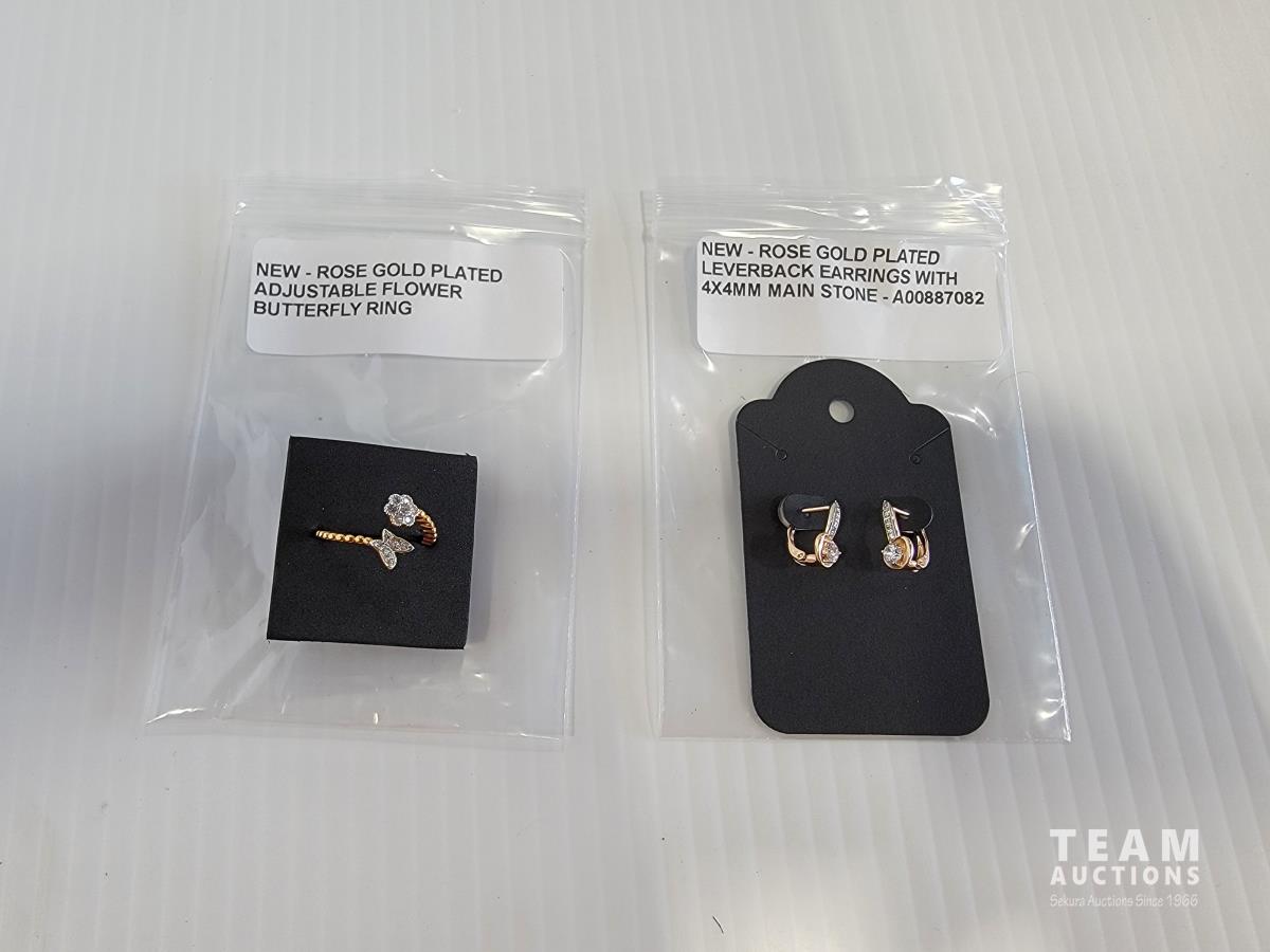 2252 Rose Gold Plated Leverback Earrings and Rose Gold Plated Flower Butterfly Ring (Unused)