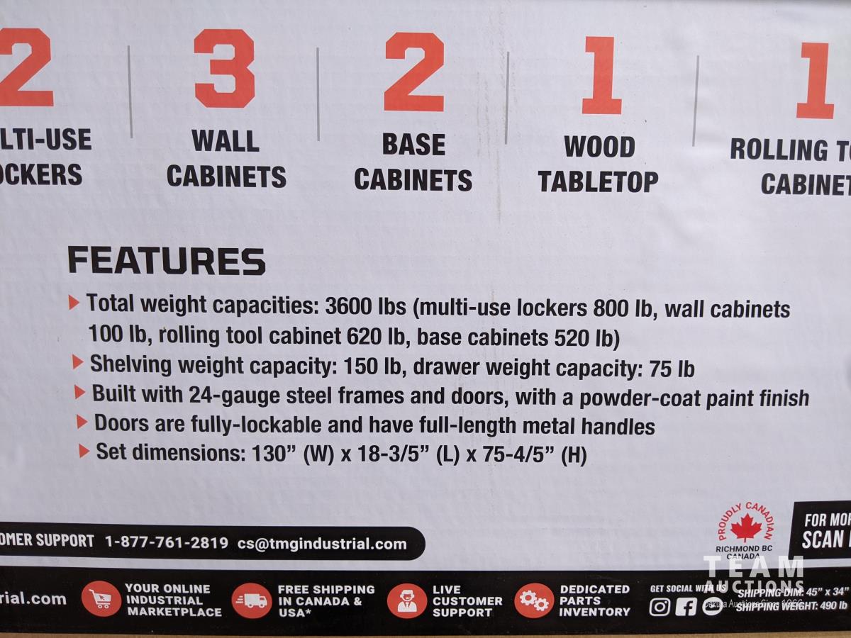 2502 TMG Industrial TMG-GCC09B Pro Series 9 Piece Garage Storage Cabinet Combo Set with Rolling Cabinet (Unused)