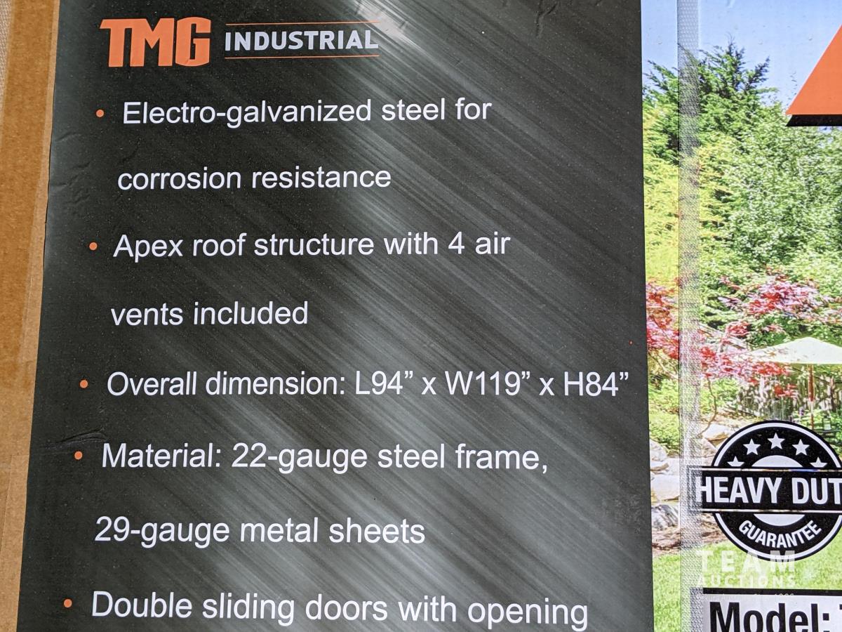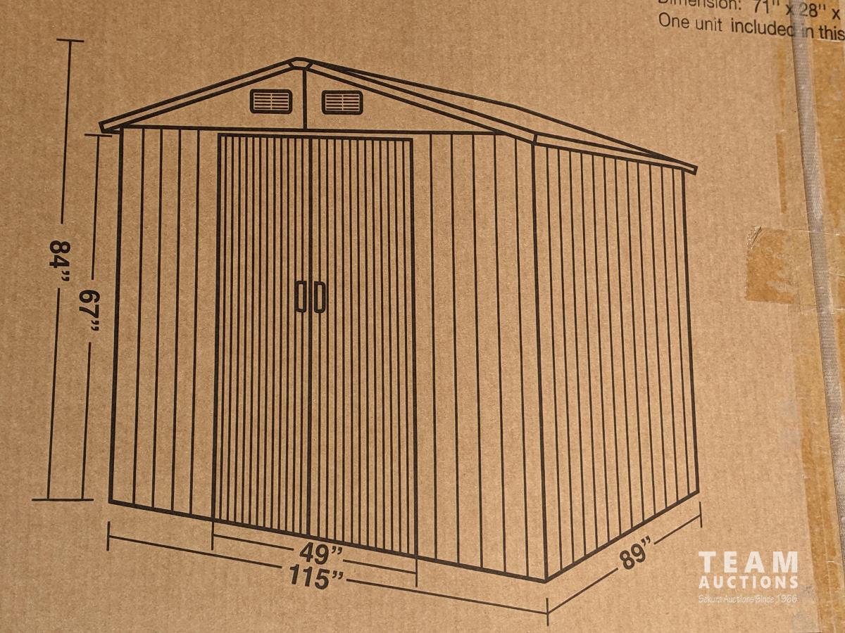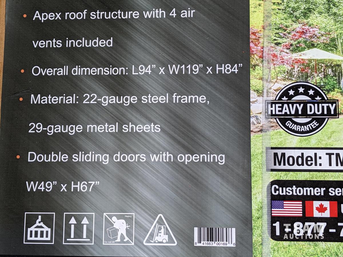 2489 TMG Industrial TMG-MS0810 8 Ft X 10 Ft Galvanized Apex Roof Metal Shed (Unused)
