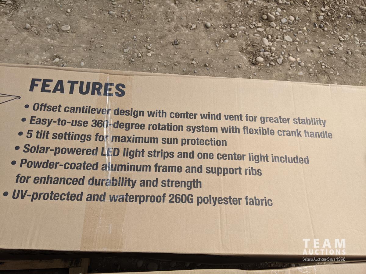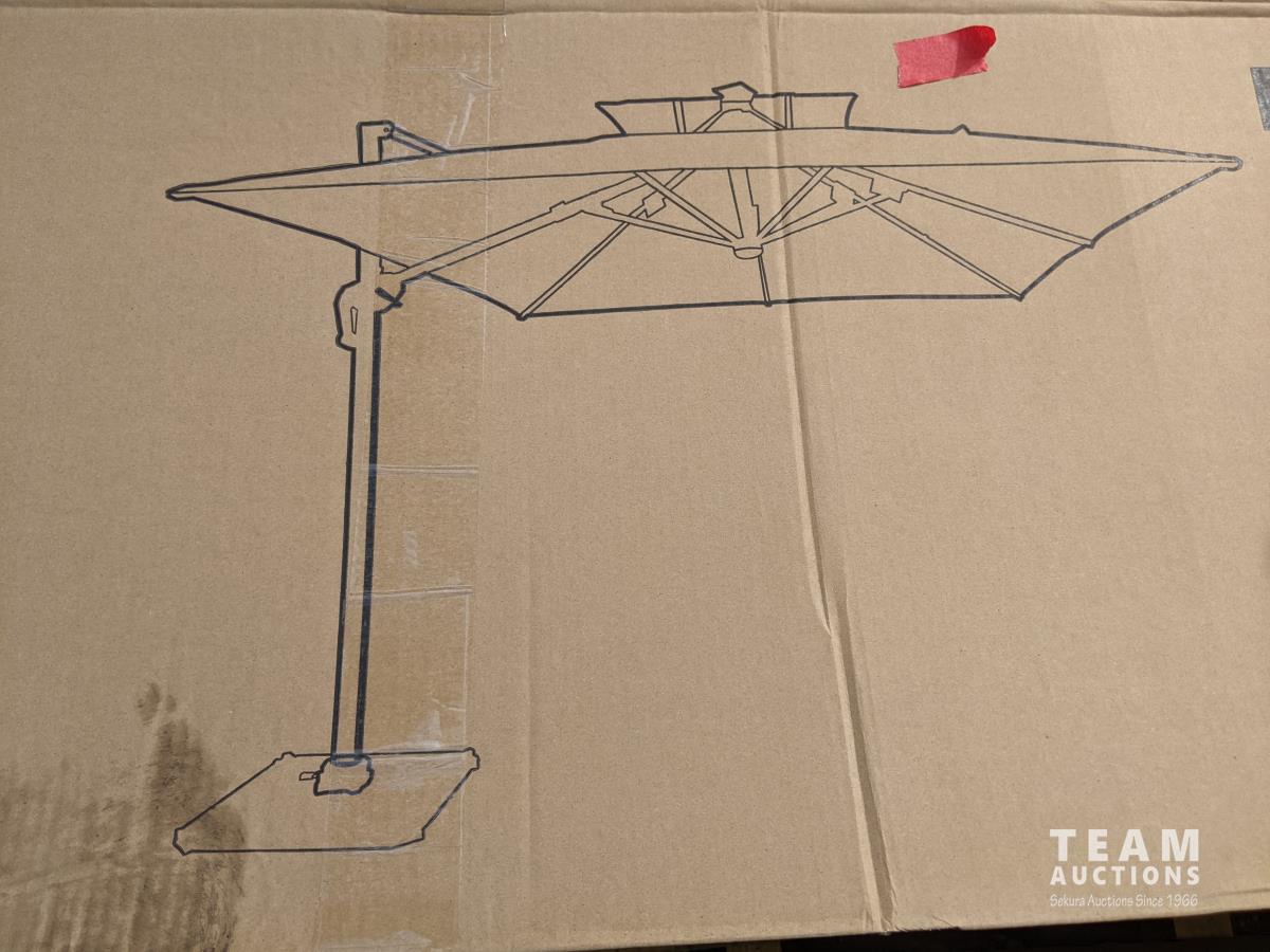 2481 TMG LIVING TMG-LUA08 8 Ft X 8 Ft Cantilever Offset Aluminum Umbrella with LED Lights (Unused)