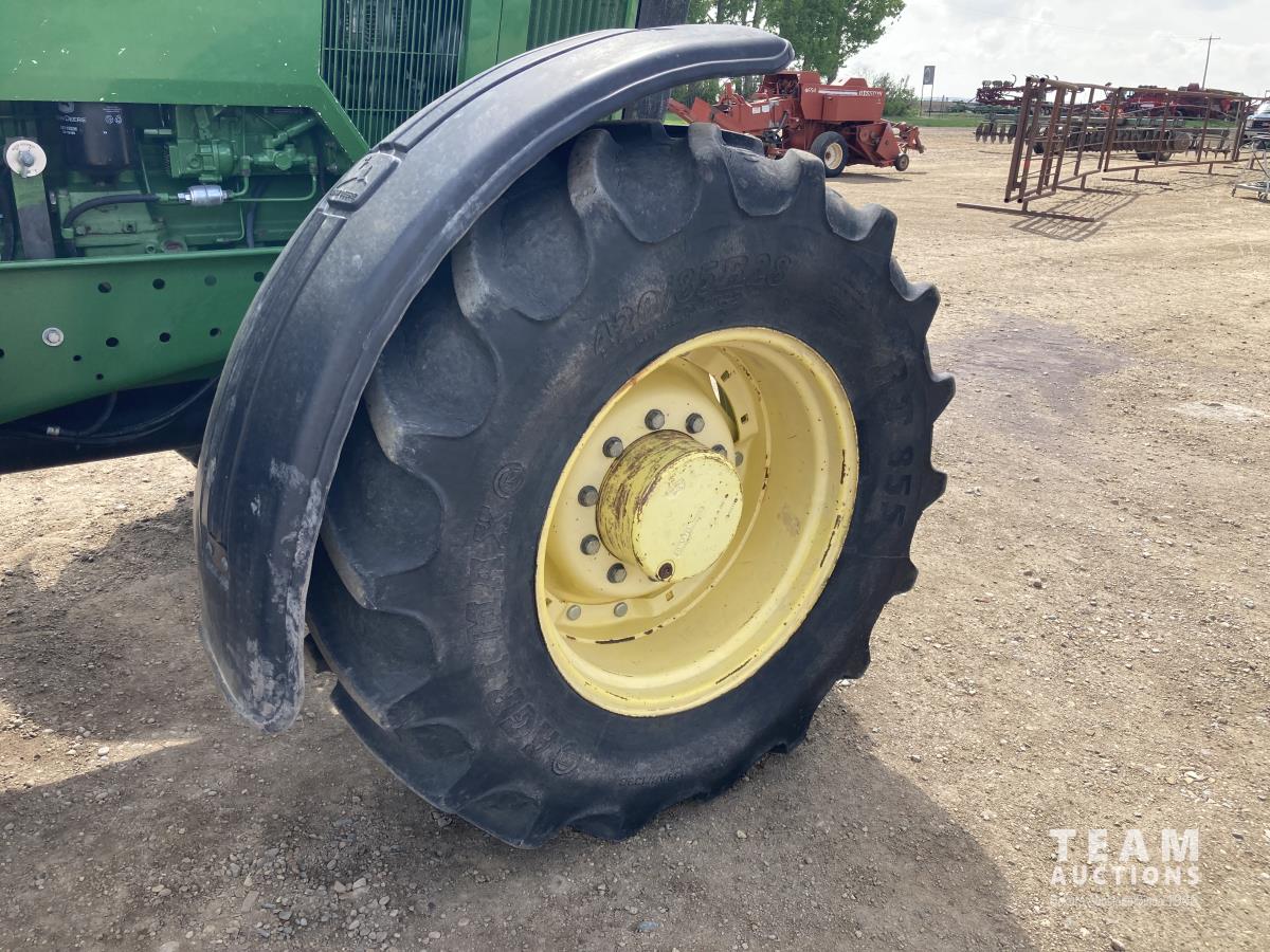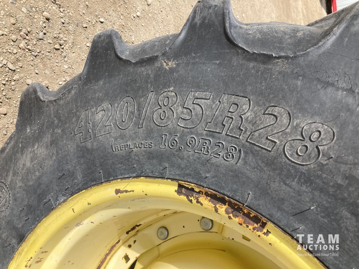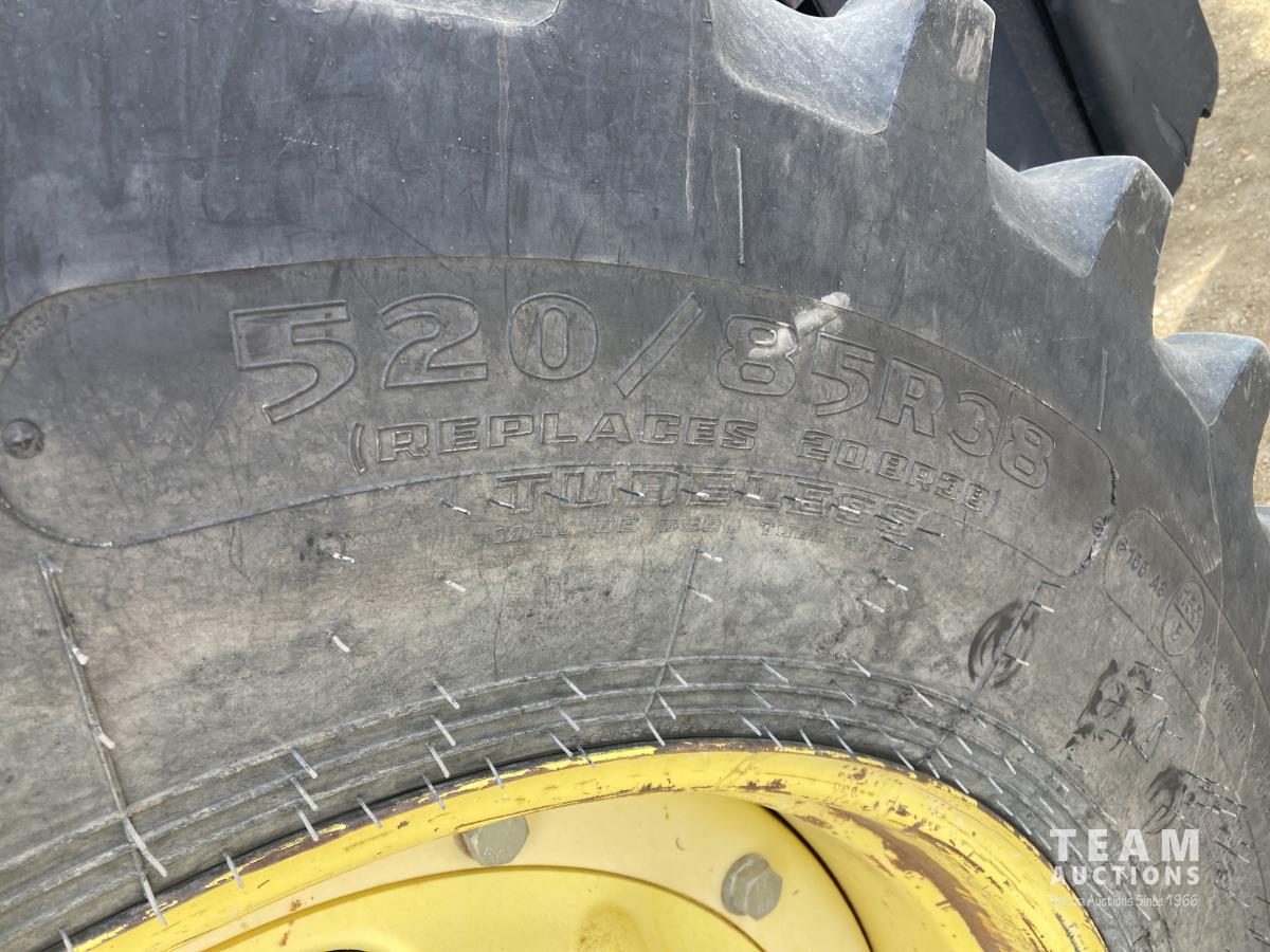 8.1 L 155 HP, diesel engine, 135 PTO HP, 16 speed partial power shift transmission, cab, ROPS, rear differential lock, A/C, 12 front weights, 540/1000 PTO, 3 point hitch exterior control, 4 rear hydraulic outlets, 420/85R28 front tires, 520/85R38 rear tires