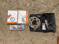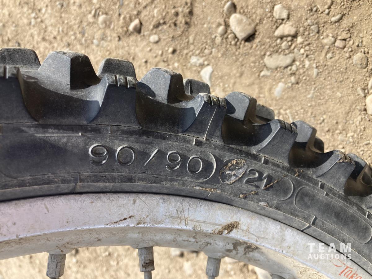 120/90-18 rear tire, 90/90 front tire, spare sprockets w/ hand gaurds, helmet