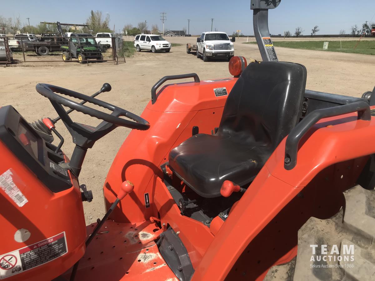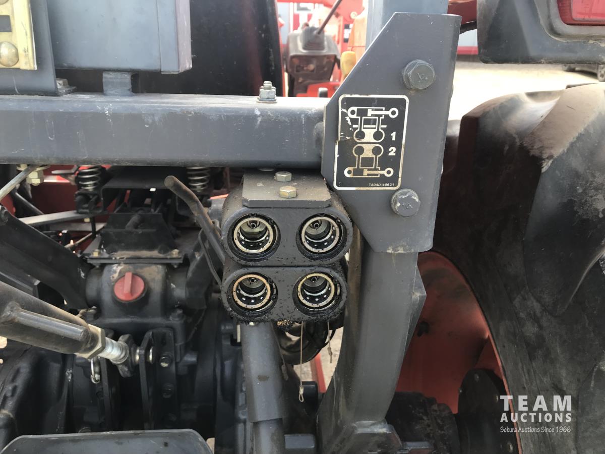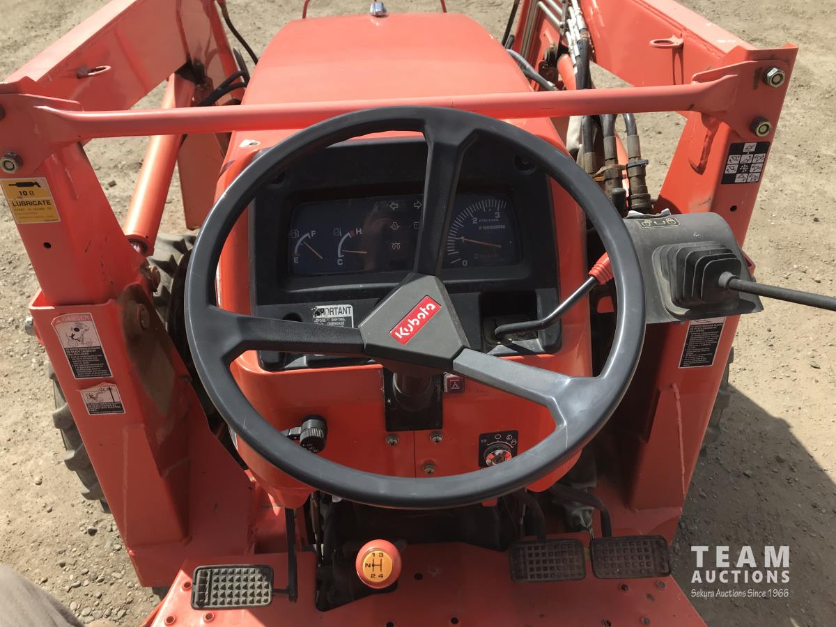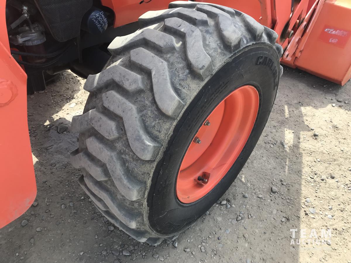 Kubota LA852 loader, 71 inch bucket, Kubota 2.4 4 cylinder 50 HP, diesel engine, 44 PTO HP, 8 speed partial synchro transmission, 14 GPM hydraulic pump, open station platform, 540 PTO, 3 point hitch, 2 rear hydraulic outlets, 12-16.5 front tires, 17.5L-24 rear tires