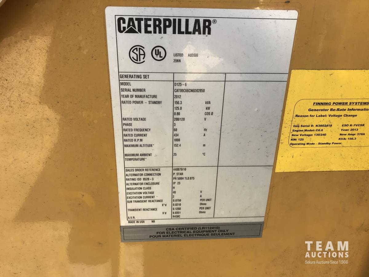 349 2012 Caterpillar D125-6 125 kW Generator