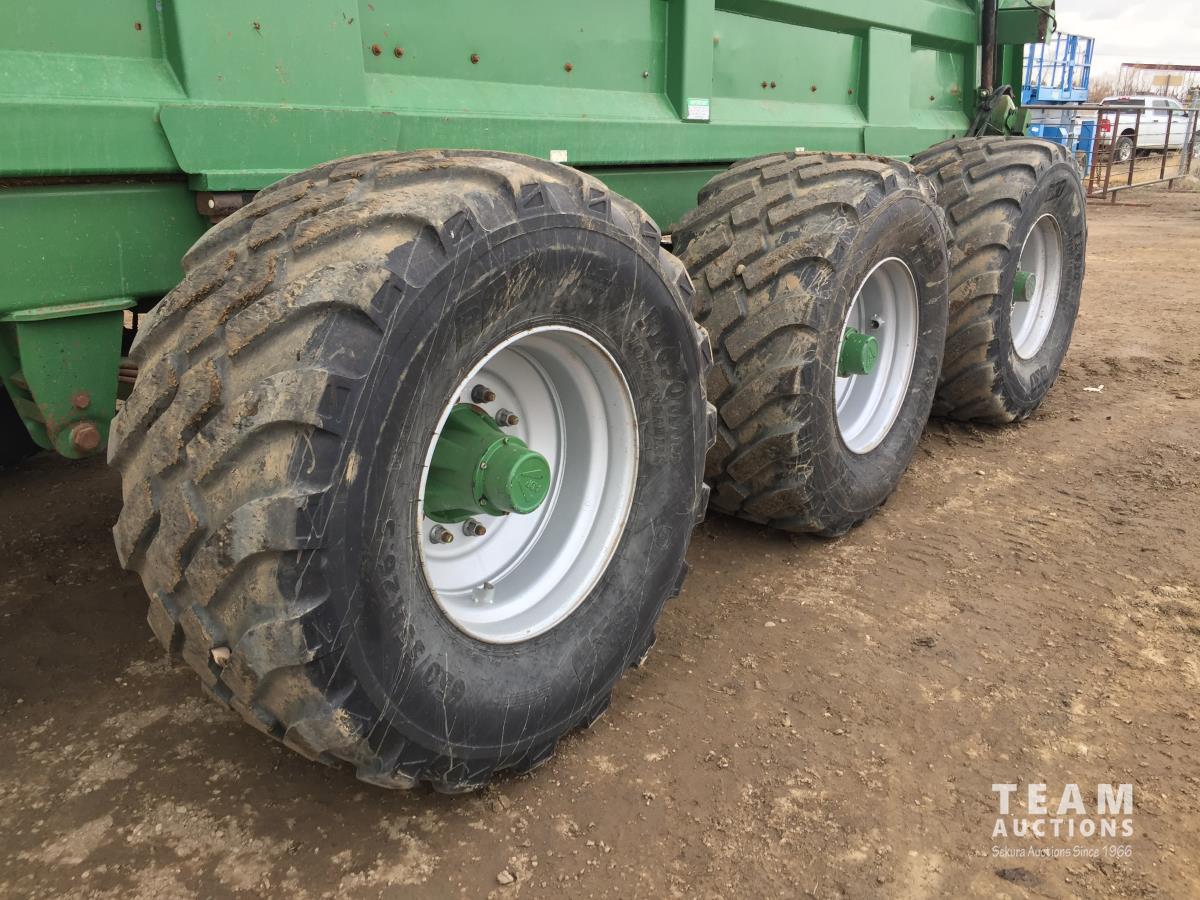 Big 1000 PTO, twin beaters, steering axles, tridem axle sprung suspension, 650/55R26.5