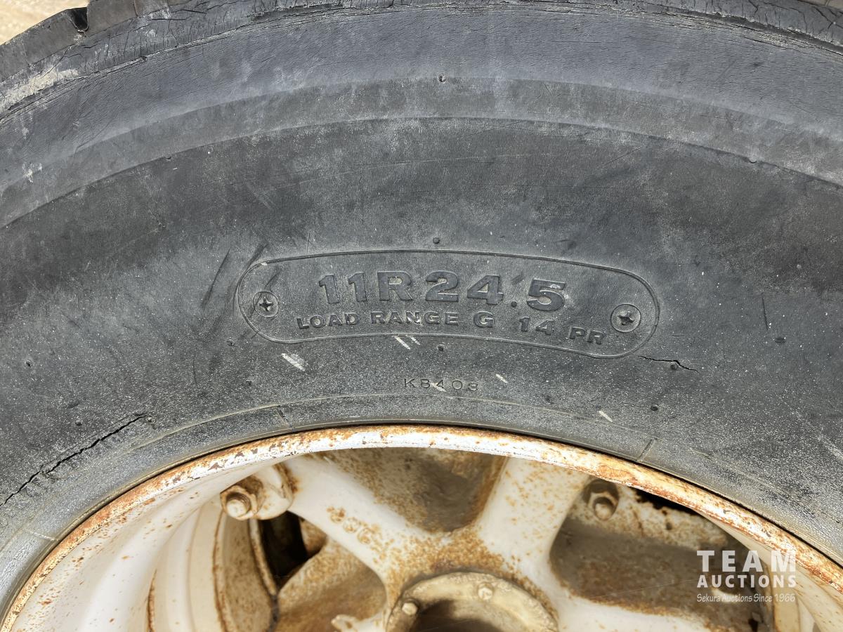 96 inch wide deck, wood deck, stake pockets, rub rails, cargo winches, spring suspension, 11R24.5 tires