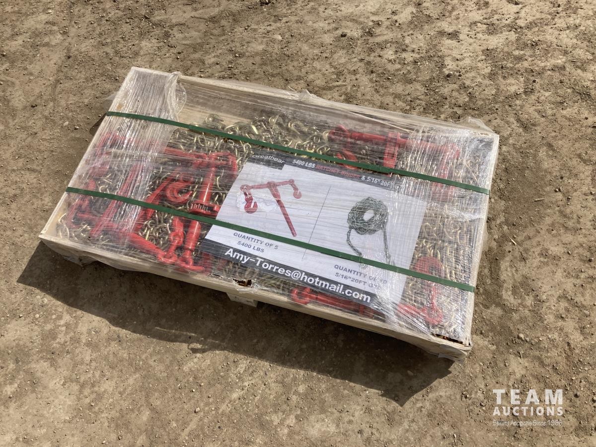 11 Greatbear (5) 5400 lb Ratchet Binders W/ (10) 5/16 20 Ft G70 Chain (Unused)