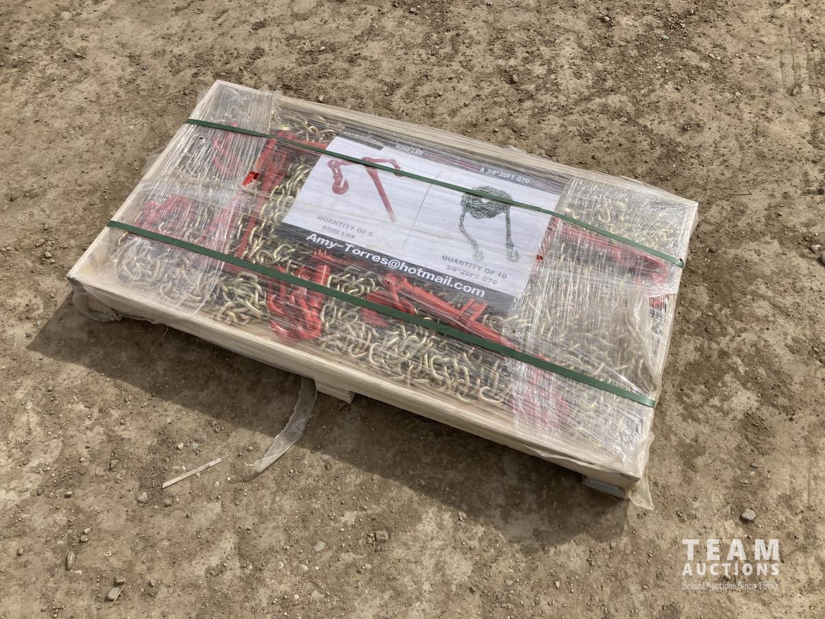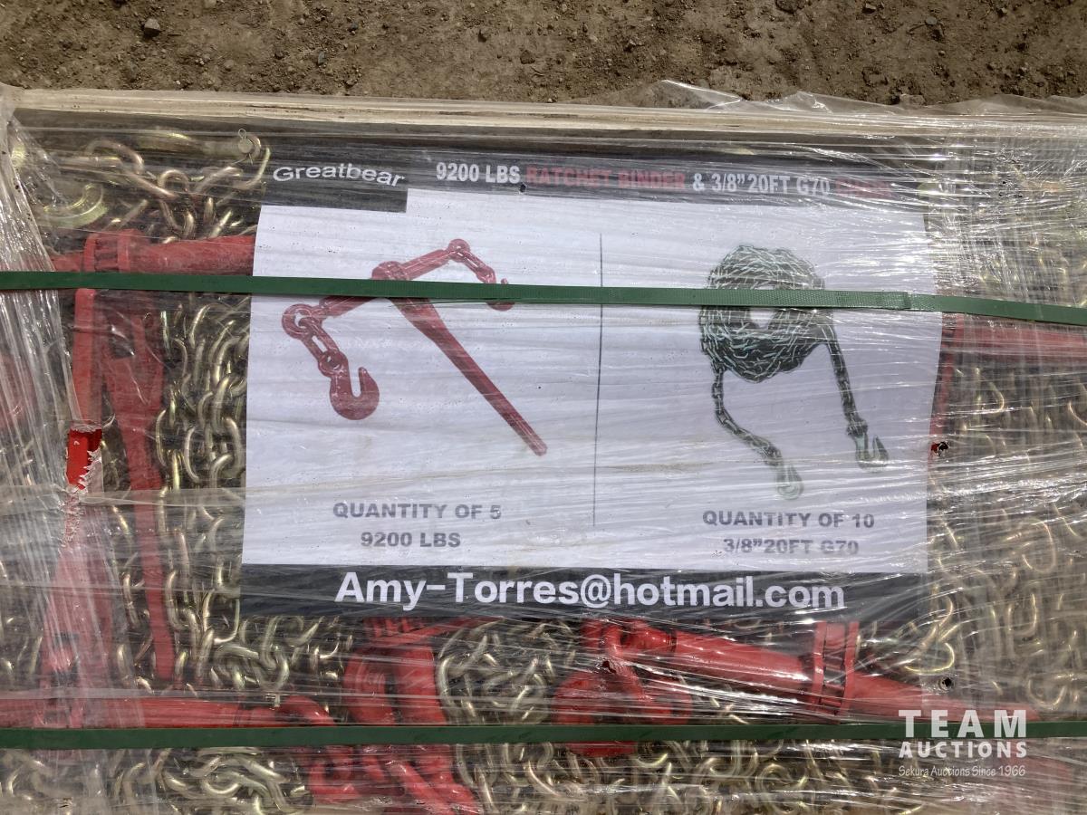 12 Greatbear (5) 9200 lb Ratchet Binders W/ (10) 3/8 20 Ft G70 Chain (Unused)