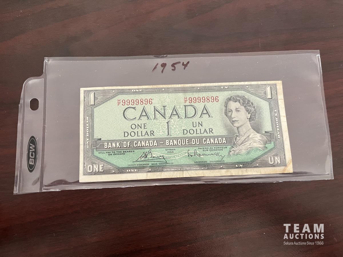 1288 1954 Collectible Canadian One Dollar Bill