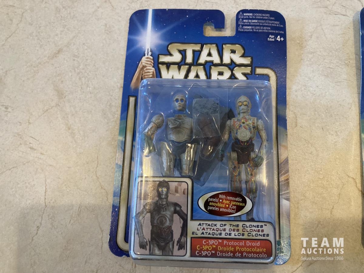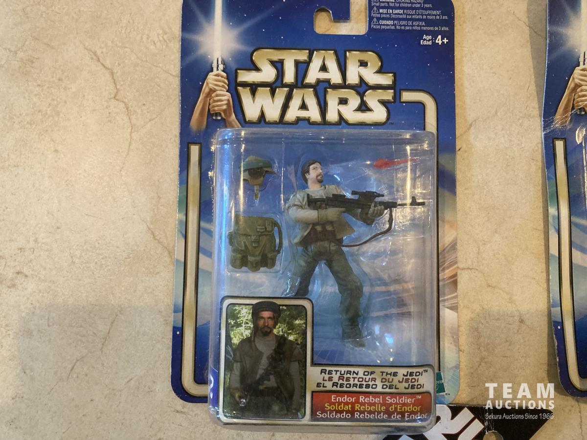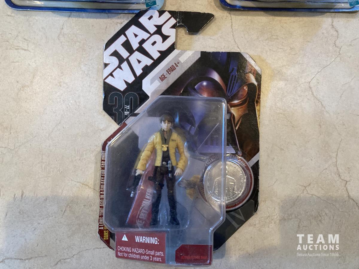 2006 Hasbro 30th Anniversary Ceremony Luke Skywalker Silver Coin. 2002 C-3PO Protocol Droid collection 1. 2001 Aanalein Skywalker Outland Peasant Disguise. 2002 Return of the Jedi collection 2, Endor Rebel Soldier