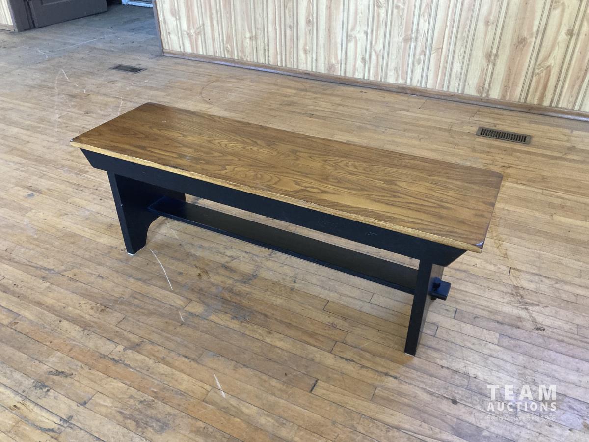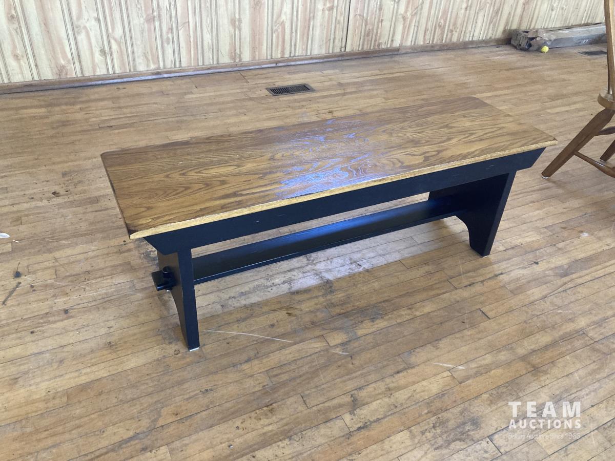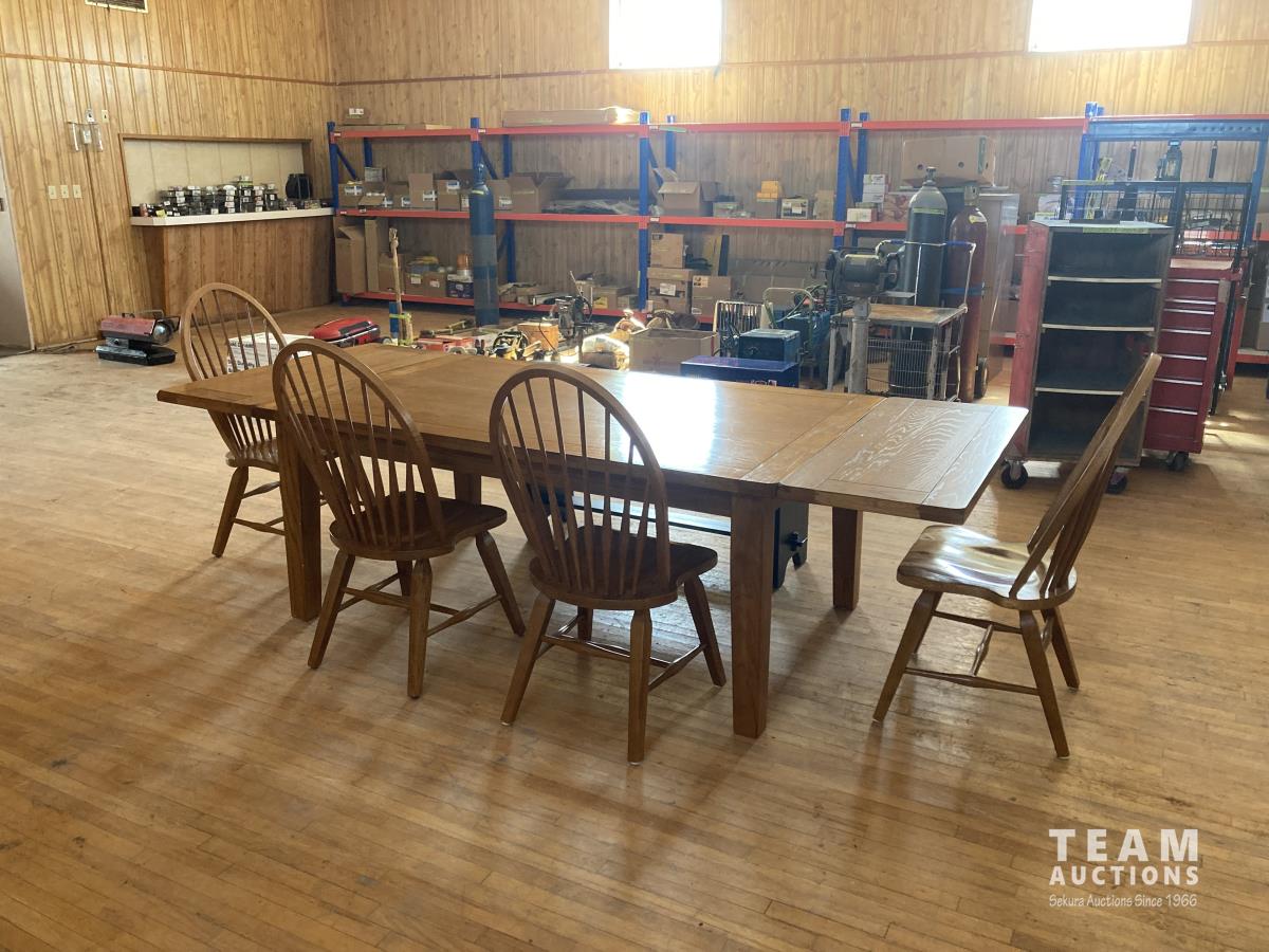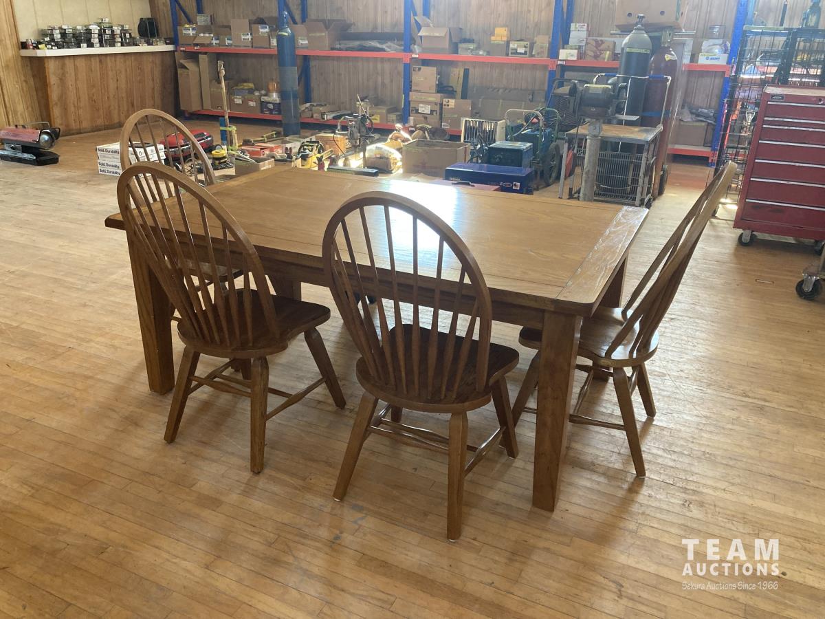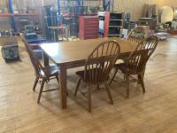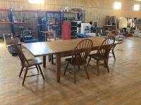 72 X 44 inch table w/ 2 18 inch extensions, 4 chairs, bench seat