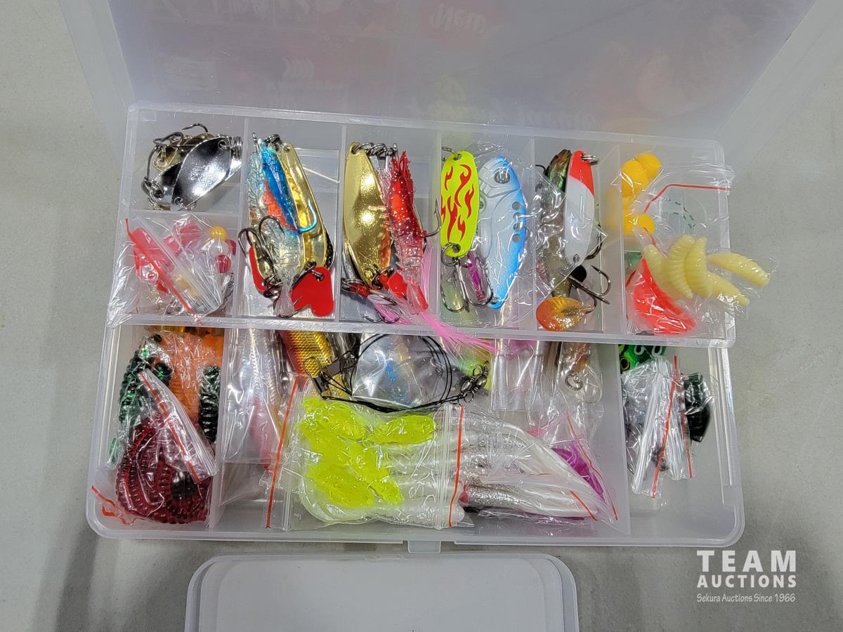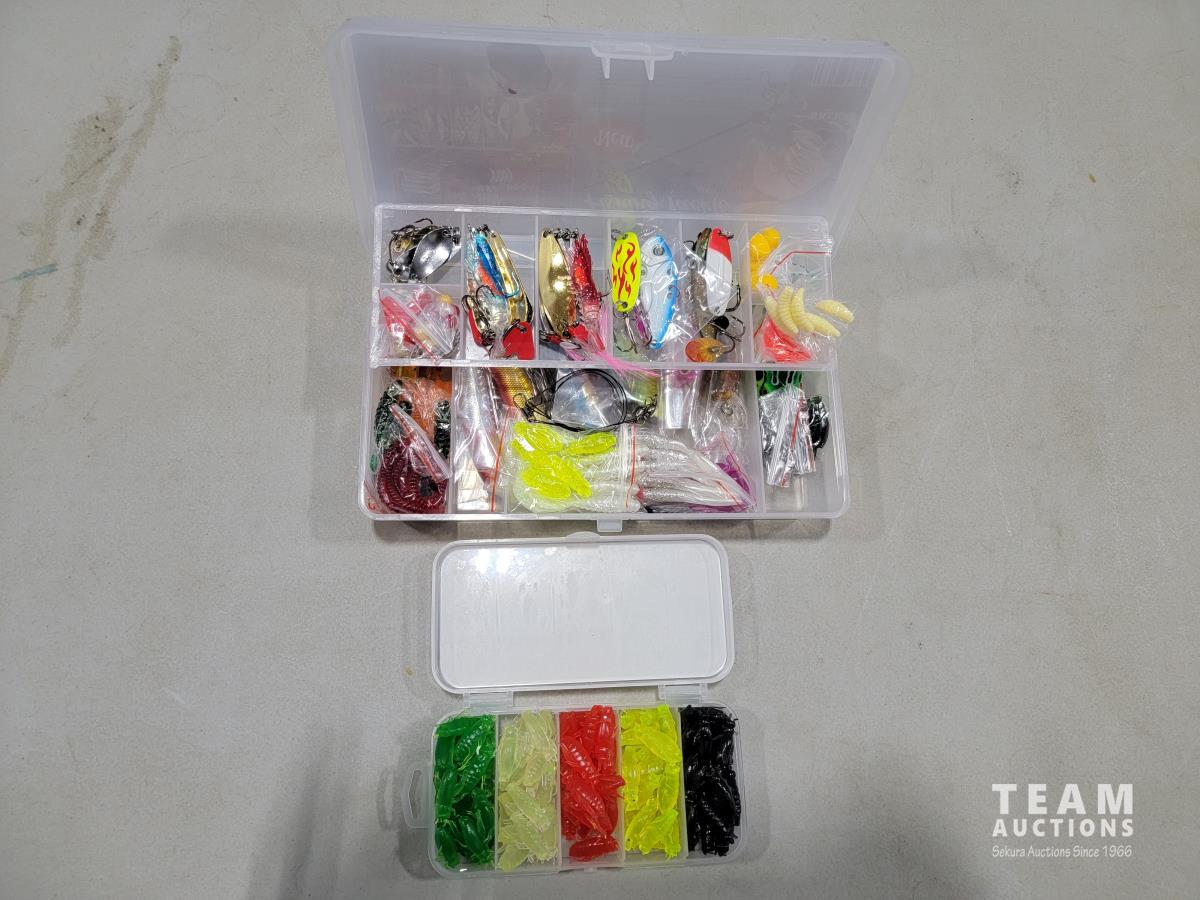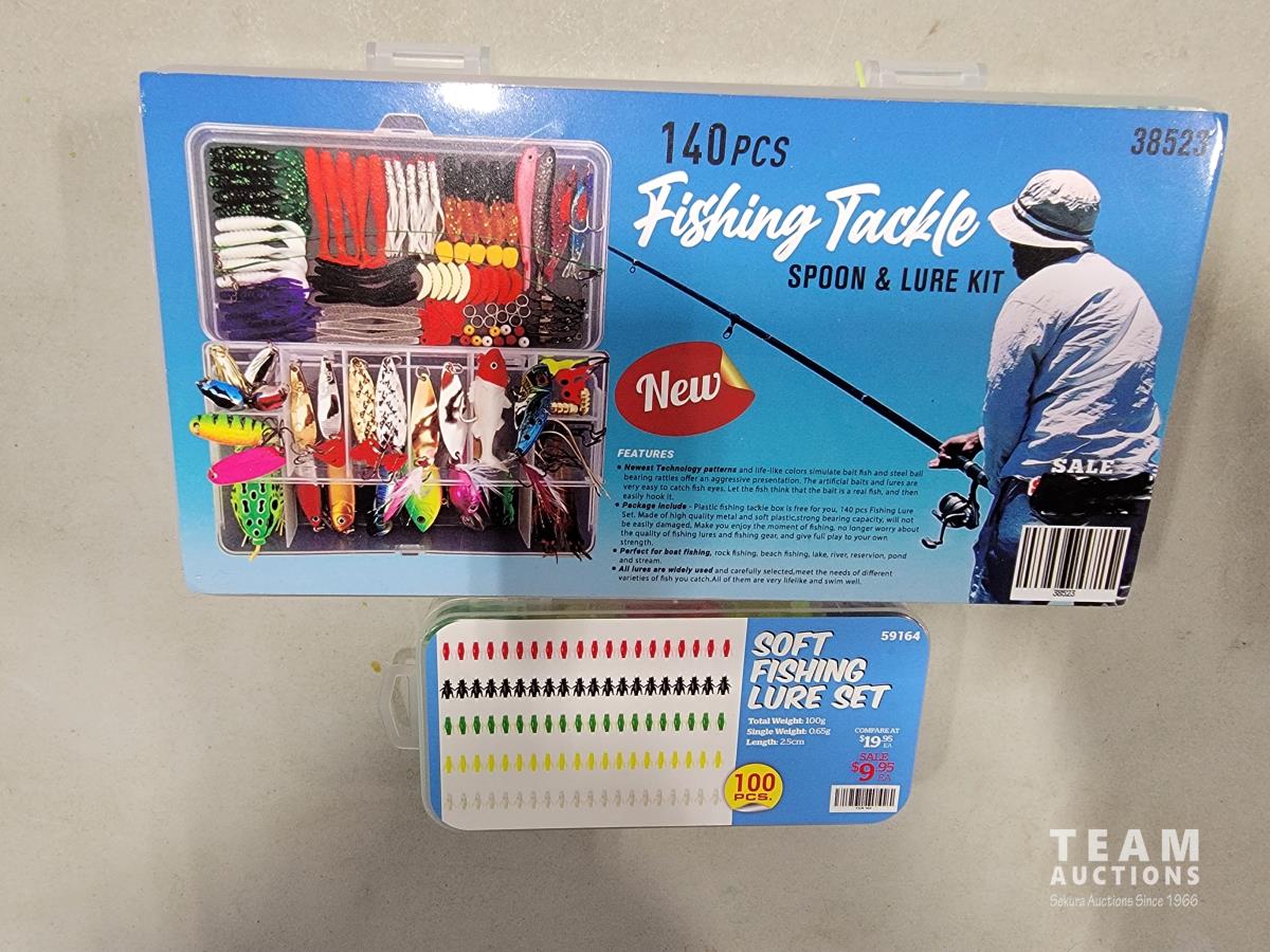 1548 140 Piece Tackle Spoon & Lure Kit and 100 Piece Soft Fishing Lures (Unused)