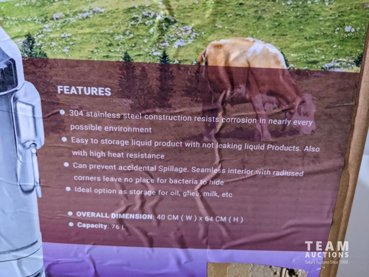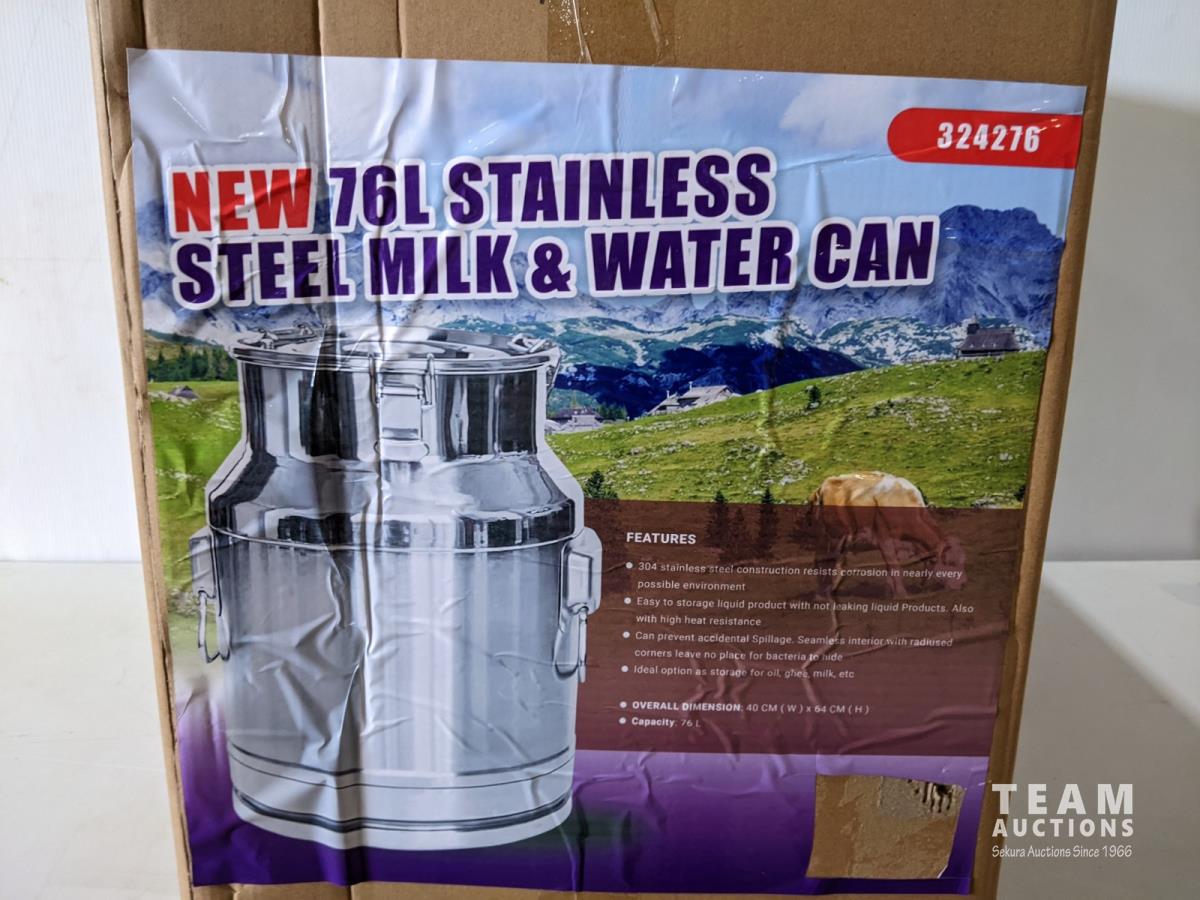 1254 (2) 76L Stainless Steel Milk/Water Cans (Unused)