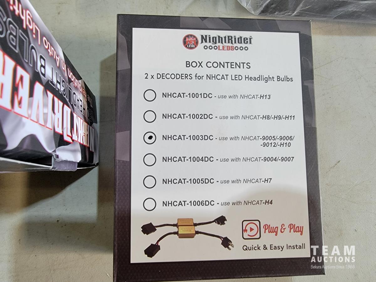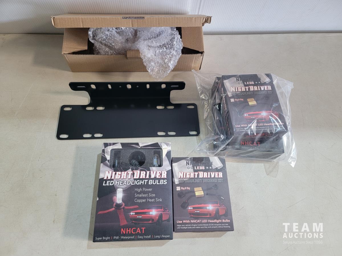 1429 (2) Sets LED NHCAT-9006 Headlight Bulbs with Decoder Kit and (1) License Plate Bracket (Unused)