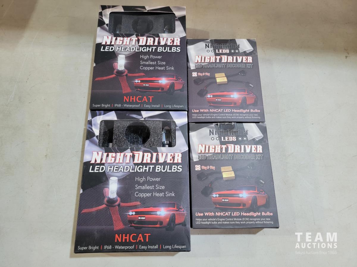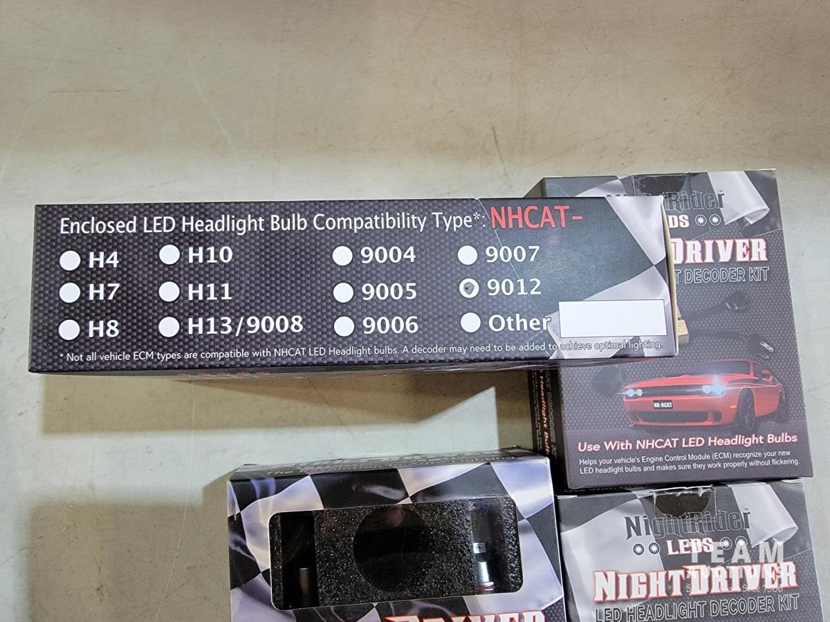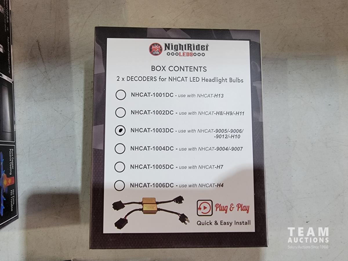 1663 (2) Sets of Night Rider LED NHCAT-9012 Headlight Bulbs and (2) LED Headlight Decoder Kits (Unused)