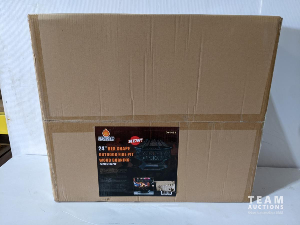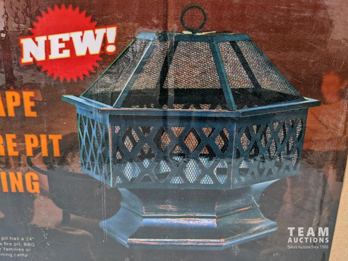 1211 24 Inch Outdoor Hex Shape Wood Burning Firepit (Unused)