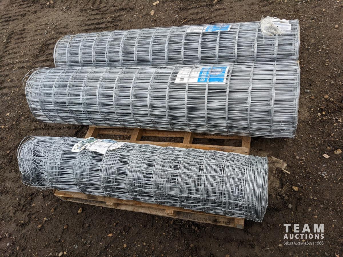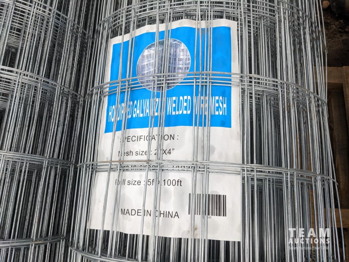(2) Rolls hot dipped galvanized welded mesh 5 ft x 100 ft and (1) roll hot dipped galvanized field fencing 4 ft x 330 ft
