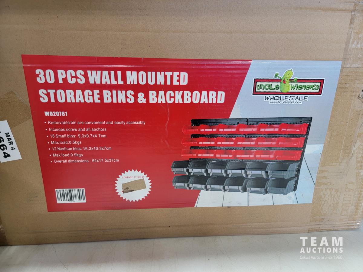1584 30 Piece Wall Mounted Storage Bin and Backboard (Unused)